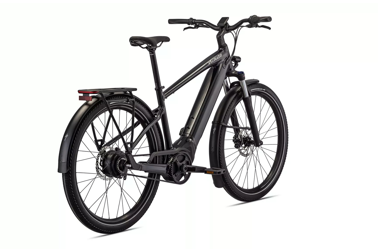 Turbo Full Power 2.0E motor and 530Wh battery offer an unparalleled riding experience, providing a smooth, seamless, and shockingly quiet amplification of your efforts, up to 20 mph. The integrated controller responds to your pedal inputs resulting in intuitive amplification of your efforts with an incredibly natural feel. MasterMind and Specialized app - The MasterMind display reveals all relevant info about your ride and allows real-time tuning of support levels. MasterMind seamlessly integrates with the Specialized app for range optimization tools, advanced tuning, on-ride diagnostics, and more. The stepless shifting enviolo City Internal Gear Hub (IGH) features a specifically designed internal gear hub and matching controller. The manual stepless technology is as simple as adjusting the volume on a radio. This allows riders to focus on the important aspects of a bike ride such as traffic or scenery. Proven Smooth Efficiency - We designed a custom testing mechanism to analyze bumps at even the smallest frequency to increase comfort and vision. That precision, paired with higher volume tires, and an 80 mm suspension fork, will flatten roads before your eyes. Turbo System Lock - Use the Specialized app to disable your bike’s motor and activate the motion sensor alarm. Once locked, the motor cannot be enabled again except by the owner. Fully Integrated Removable and Lockable Downtube Battery - Easy to charge, easy to secure. Equipped with DRYTECH Fenders, LED front and rear lights, and 27kg capacity rear HD Rack. The rear rack is compatible with child bike seats, and the bike is also rated to pull a thru-axle trailer. Long-Range - With a ride-anywhere range, go up to 56 miles (90 km) or 4 hours on a single charge (eco mode). |