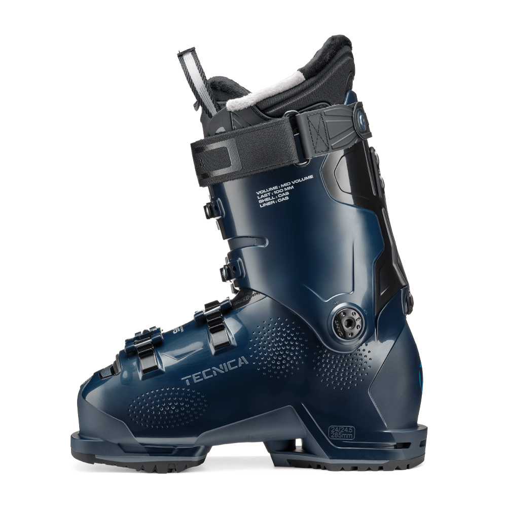 Women's Natural Stance – Tecnica performed scientific research to determine the optimal ski stance for women. The final outcomes are the Women's Specific Cuff and a 3mm higher back spine for natural balance, less fatigue and increased performance on your skis.