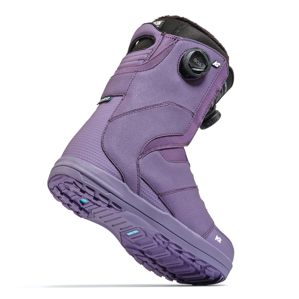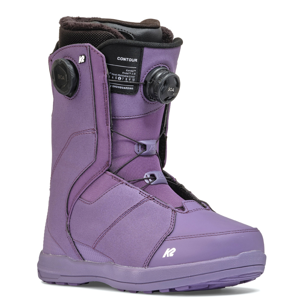 The K2 Contour Women’s Snowboard Boots are a favorite among the women’s pro team for good reason. Combining a mid-to-stiff flex with a sleek, performance-focused design, these boots deliver both power and style on the slopes. The standout feature is the innovative Conda™ liner lacing system, powered by a BOA® Fit System dial that effortlessly pulls your heel securely into the boot’s heel pocket for unmatched comfort and control. Designed for riders who demand precision and responsiveness without sacrificing style, the Contour boots are ready to elevate your ride.