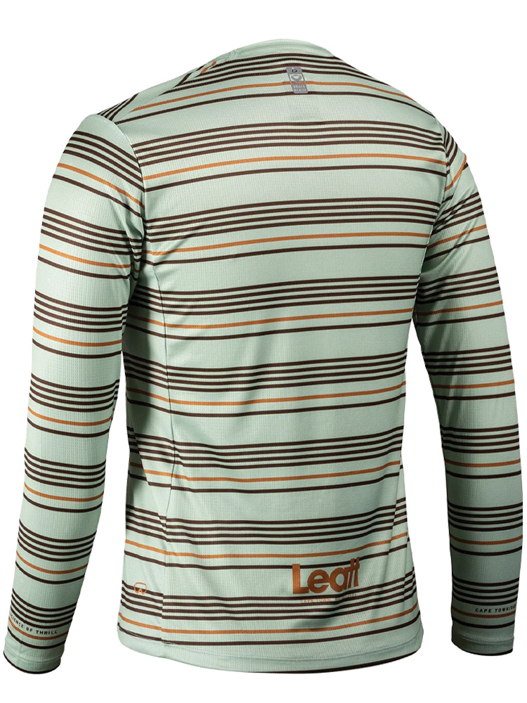 This long sleeve jersey is built to keep you cool and comfortable, even on warm days. Made from IceYarn fabric—sourced from recycled coffee grounds—it offers a natural cooling effect and is soft on sensitive skin. Strategically placed laser-cut ventilation holes enhance airflow for added breathability. The athletic, regular fit is designed to accommodate slimline protection gear underneath without restricting movement. A built-in microfiber goggle or sunglasses wipe at the hem ensures your vision stays clear when the trail gets dusty.