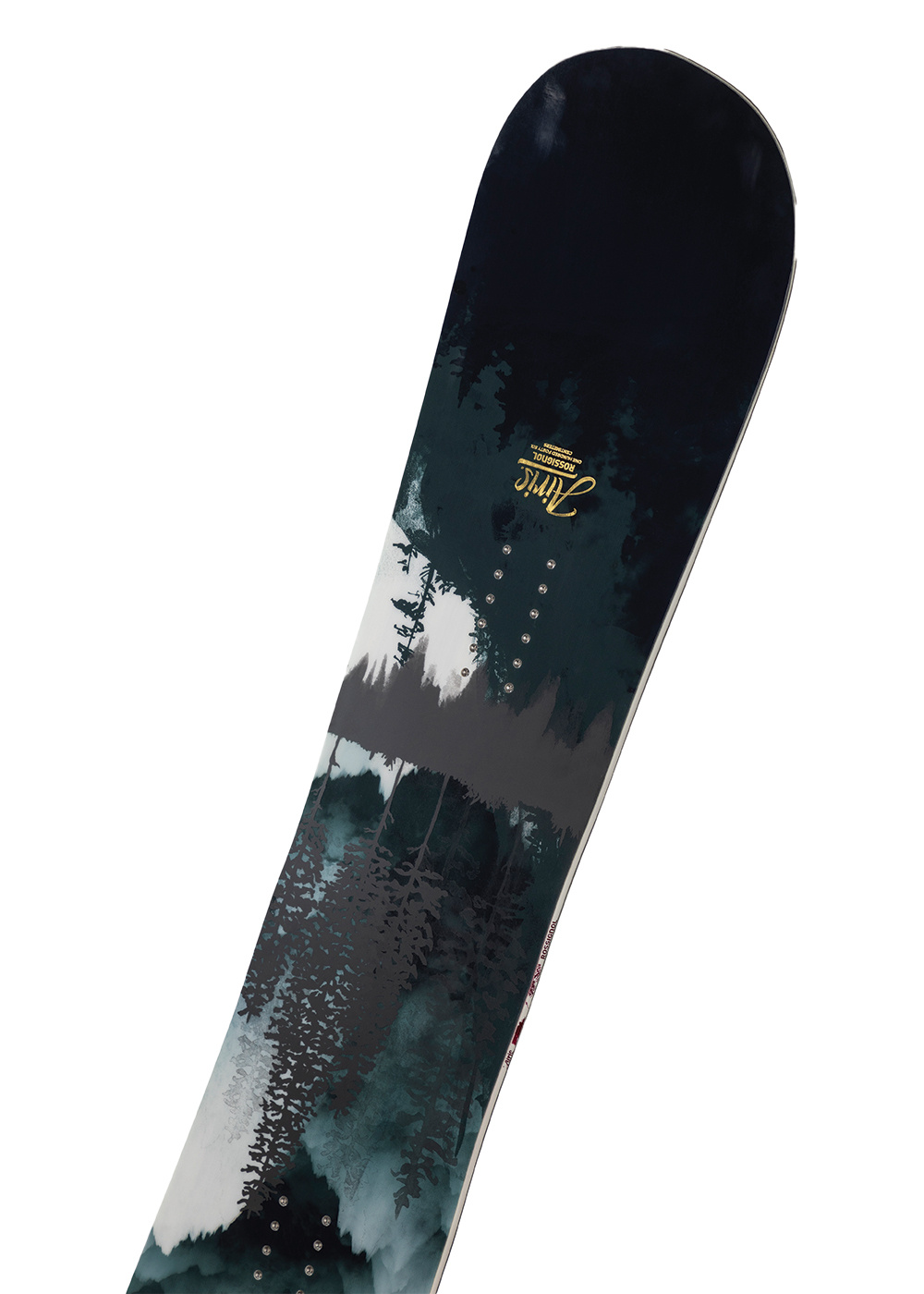 Our symmetrical TWIN ALL-MOUNTAIN flex is stiff underfoot for increased pop and balance and stiffer in the waist for increased stability at speed.