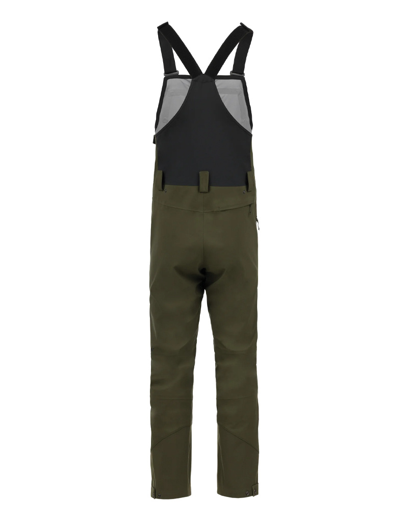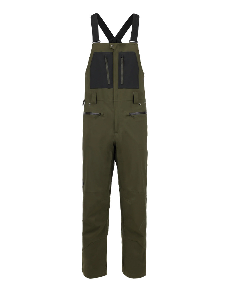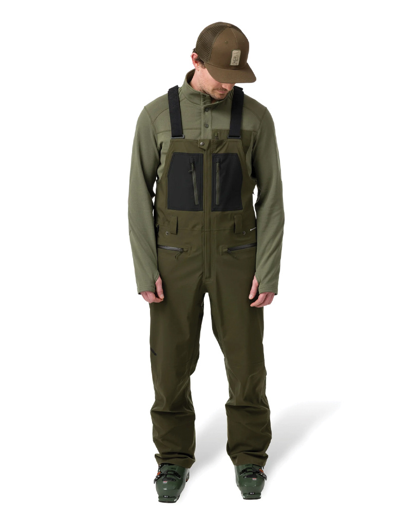 PFC-Free DWR (Durable Water Repellent) Fully seam taped 2 mid-thigh pockets (1 pleated w/ beacon attachment), 2 chest pockets (1 reach through and 1 vertical dump), 1 seat pocket Seamless cuff reinforcements Articulated knee box YKK waterproof zippers Long exterior zipper for easy entry Inner and outer thigh vents Powder gaiters Average weight: 612g |