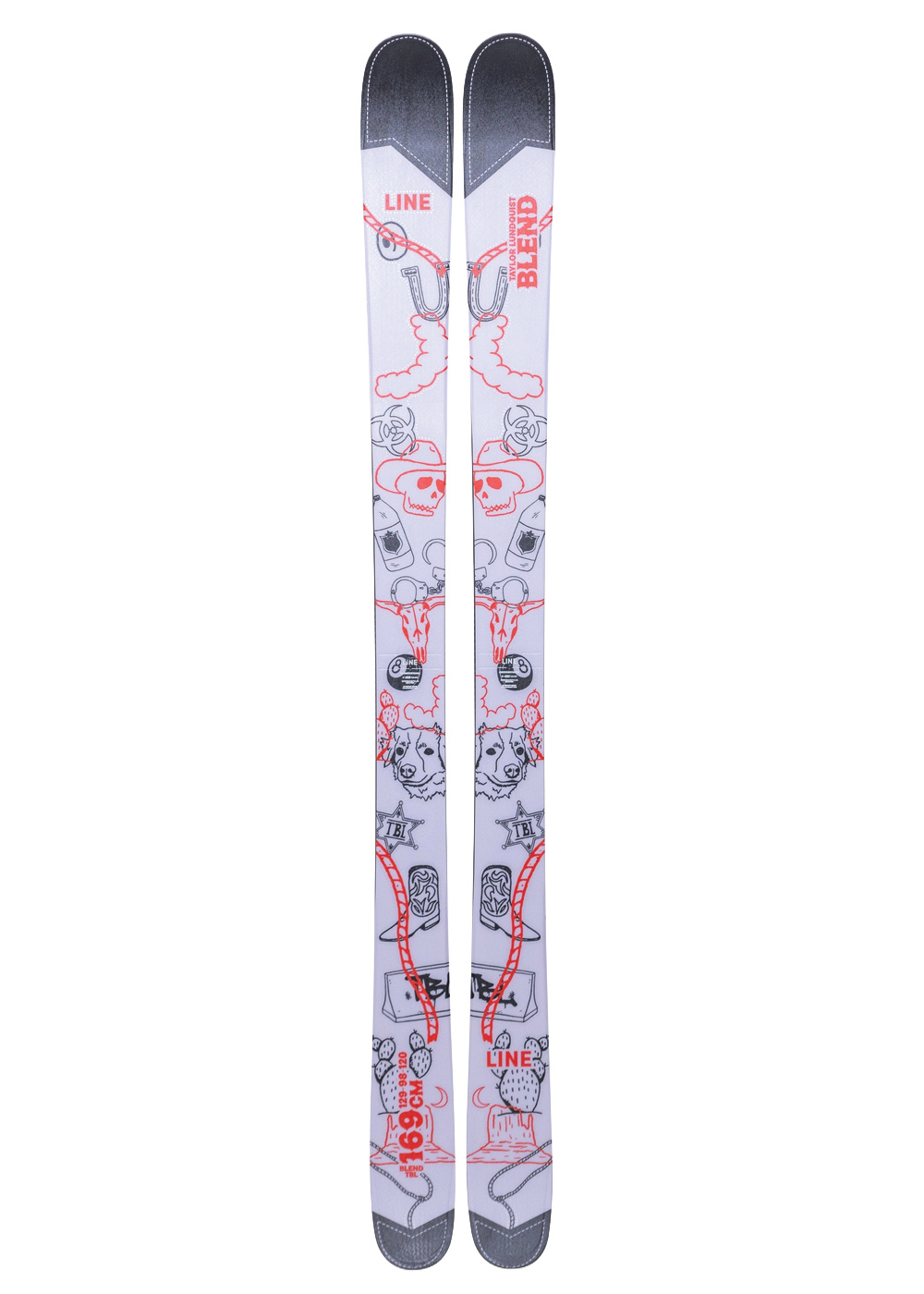 The 2026 Line Blend TBL Skis are Taylor Lunquist’s pro model, built for riders who want to push limits in the park and on urban terrain. With a 98mm waist width and reinforced chassis, these skis provide stability, pop, and durability for tricks, rails, and jumps. The TBL version features a unique graphic inspired by Taylor’s style, grit, and progressive approach to skiing.