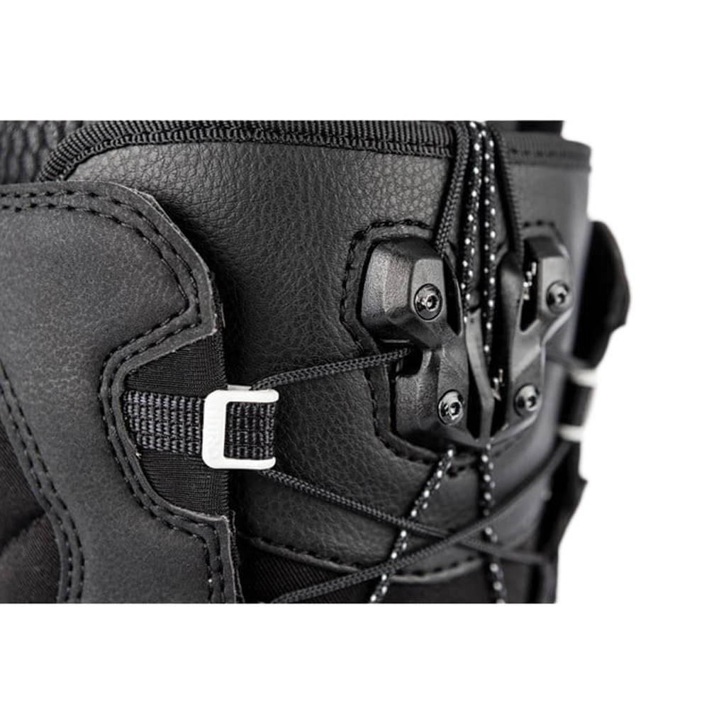 TLS Twin Lacing System – Nitro leading the pack with the TLS lacing system: Easy lace engagement and release, combined with the low abrasion of Dyneema® laces are the key factors of this highly reliable zonal lacing system. At the same time, the TLS features compact size and low weight while maintaining reliability. Bail Out System – Designed to make unlacing the TLS system even easier. This pull tab placed in the middle of the TLS lacing system on the outside of the boot allows for effortless unlacing and record breaking speeds for taking your boots off. Solo Laceglider – A redesigned and precision-molded low-friction plastic insert laceglider, which is positioned on the top sections regular lace loop of selected models. It drastically reduces the overall lace friction and makes tying up your TLS system easier than ever. 45˚ Laceglider – This precision-molded low friction plastic insert is positioned at 45˚ in the ankle area, reducing lace friction and making it even easier to tie up your laces. |