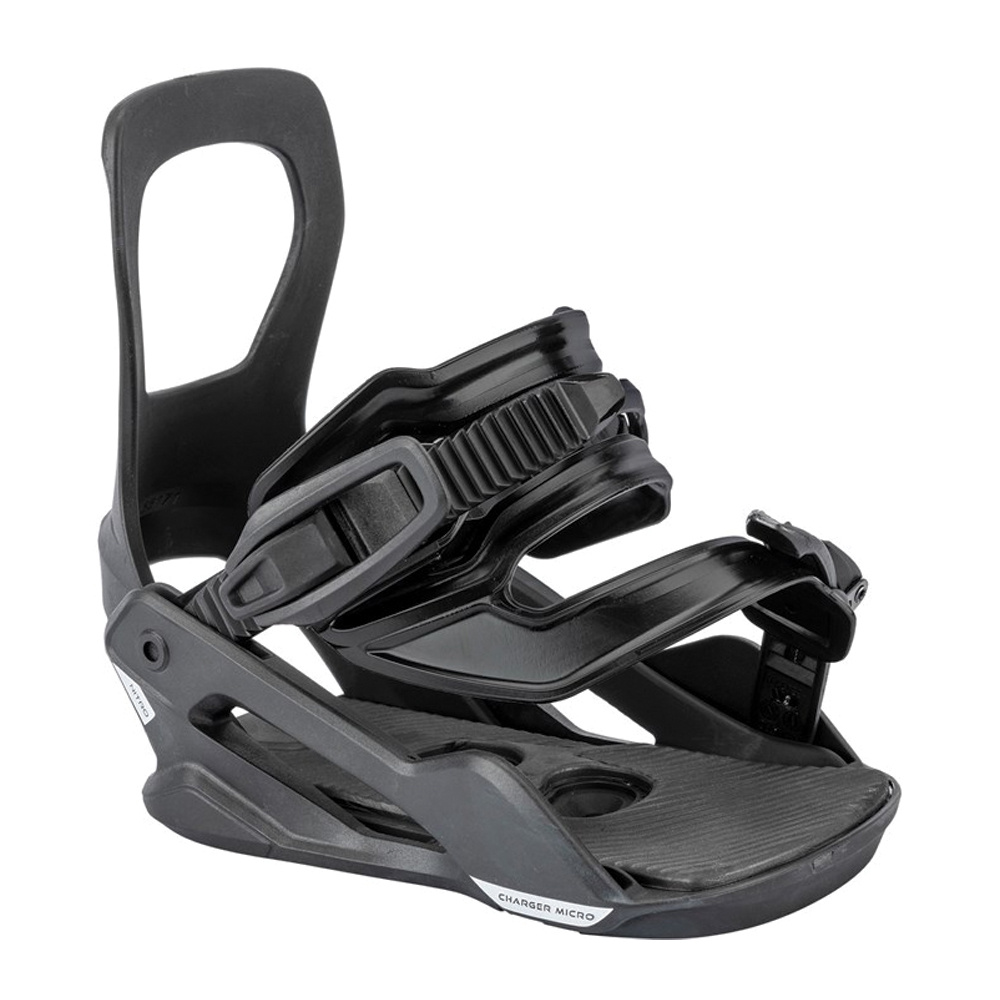 The Perfect FIT Ankle Strap with a flex window provides comfort and support, while the Easy Entry Buckles and Ratchets make strapping in fast and frustration-free. Designed to be simple enough for kids to use on their own, the Charger Micro bindings help young snowboarders build independence while enjoying stability and control on every run.