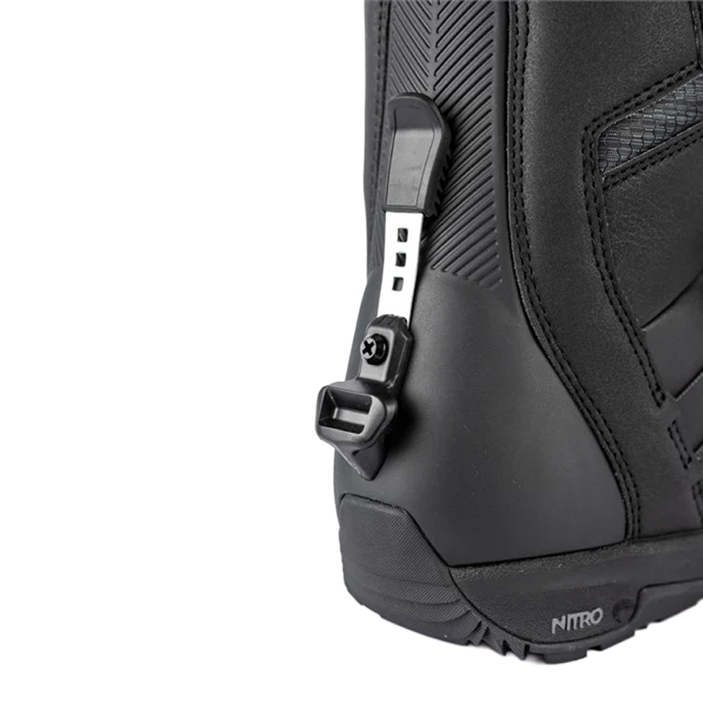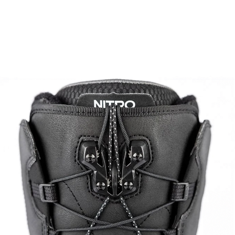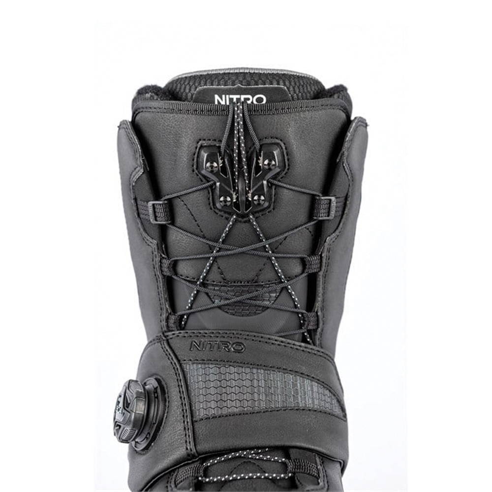 Armored Shell – Nitro uses an anatomically-shaped and 3D-molded heel reinforcement to provide even boot flex and long-lasting heel fit. Flex Link Design – A flexible panel at the ankle between the upper and lower shell ensures an even-flexing, responsive boot without bulk. Internal Ankle Support – An anatomically shaped molded plate distributes lace pressure over the instep and top ankle area. Resulting in more comfort and a better, more precise fit. |