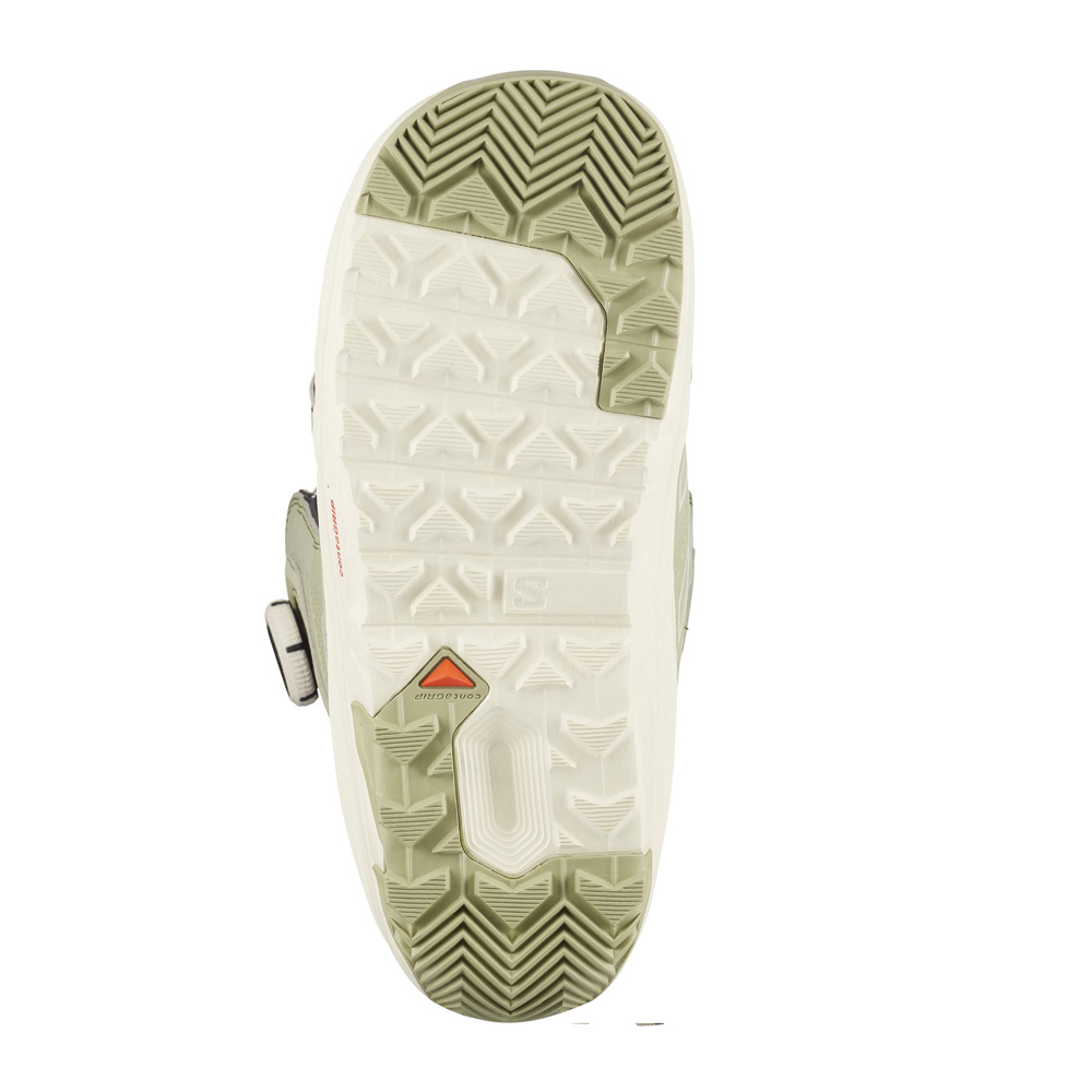 The Salomon Ivy BOA® SJ Women’s Snowboard Boots combine modern style with high-performance functionality. Featuring a medium flex, these boots adapt to a wide variety of riding styles, while the BOA®-activated Str8Jkt harness ensures superior heel hold and precise energy transfer. Built with premium materials and Salomon’s Fit To Ride construction, the Ivy BOA SJ delivers instant comfort that lasts all day, making it ideal for women seeking versatility and style on the mountain.