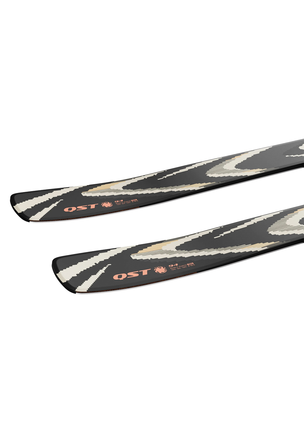Basalt & Fiberglass Fiber - From tip to tail, QST skis integrate basalt fibers seamlessly paired with fiberglass for a perfectly tuned flex. This premium fiber combination enhances power, maximizes performance, and provides superior edge grip across the entire ski. Cork Damplifier - Strategically placed cork and TPU inserts in the tips and tails absorb chatter and vibrations, giving the ski a uniquely calm, stable ride without sacrificing agility. |