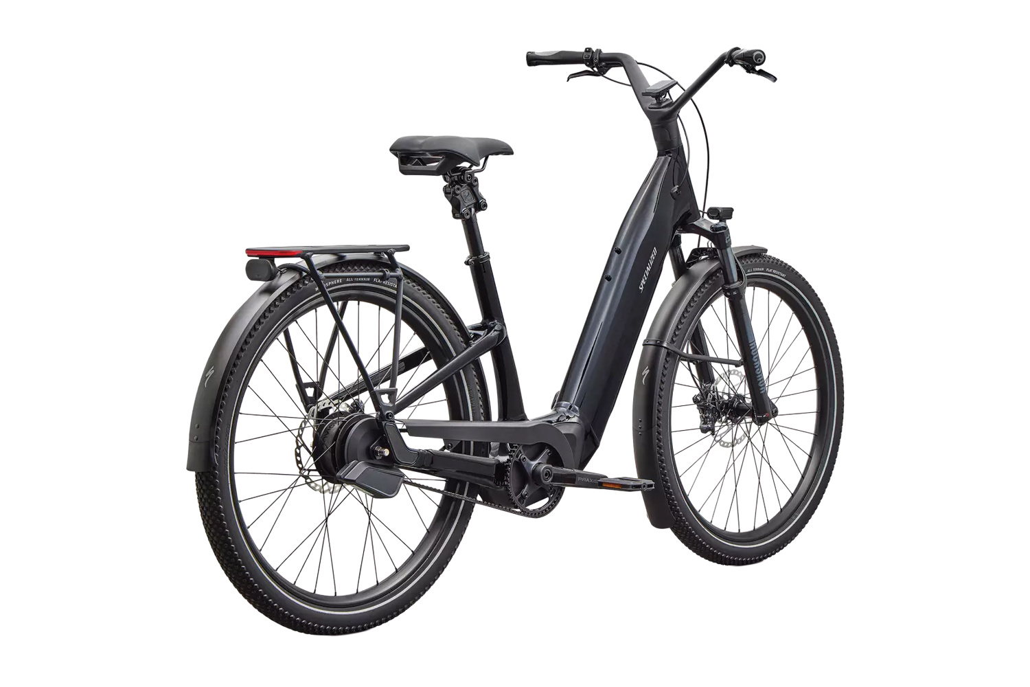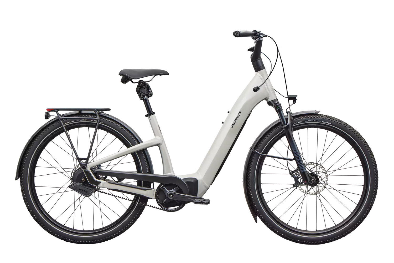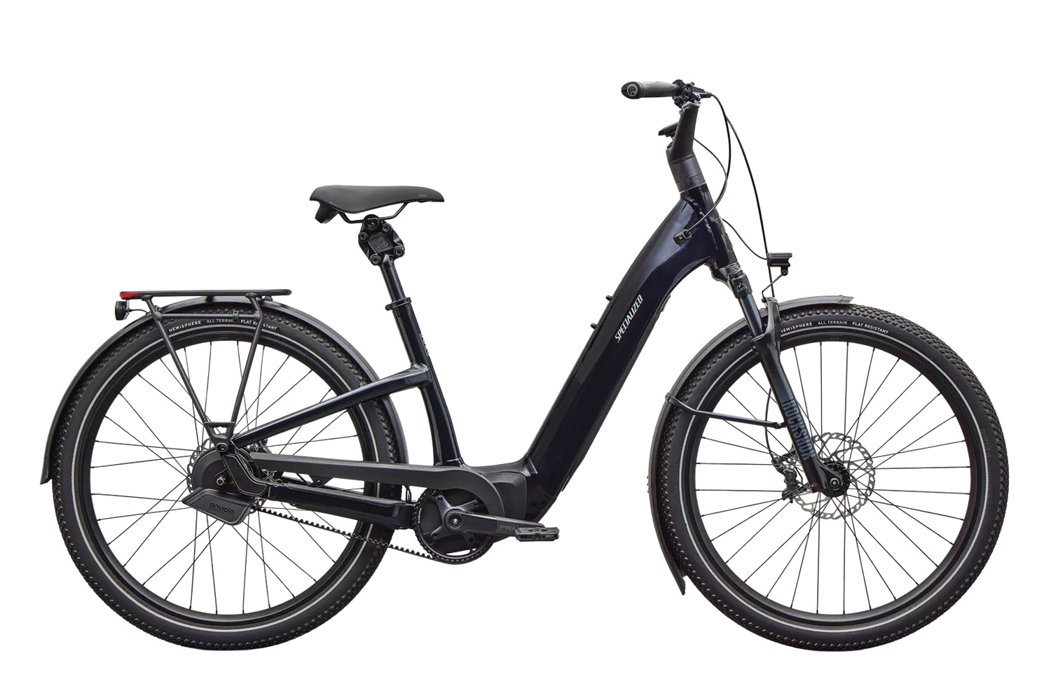 Long-Range - With true ride-anywhere range, go up to 62 miles (100 km) or 4.5 hours of range (eco mode). MasterMind and Specialized app - The MasterMind display reveals all relevant info about your ride and allows real-time tuning of support levels. MasterMind seamlessly integrates with the Specialized app for range optimization tools, advanced tuning, on-ride diagnostics, and more. The enviolo AUTOMATiQ Internal Gear Hub (IGH) stepless shifting technology automatically shifts gears based on a rider’s pedal pace, taking changes in the surroundings into account. By selecting a preferred cadence or pedal pace, it allows riders to “set it and forget it”, adding an extra layer of safety and comfort for riders. Proven Smooth Efficiency - We designed a custom testing mechanism to analyze bumps at even the smallest frequency to increase comfort and vision. That precision, paired with a suspended seatpost, higher volume tires, and an 80 mm suspension fork, will flatten roads before your eyes. Turbo System Lock - Use the Specialized app to disable your bike’s motor and activate the motion sensor alarm. Once locked, the motor cannot be enabled again except by the owner. Fully integrated removable and lockable downtube battery - Easy to charge, easy to secure. Equipped with DRYTECH Fenders, LED front and rear lights, and 27kg capacity rear HD Rack. The rear rack is compatible with child bike seats, and the bike is also rated to pull a thru-axle trailer. |
