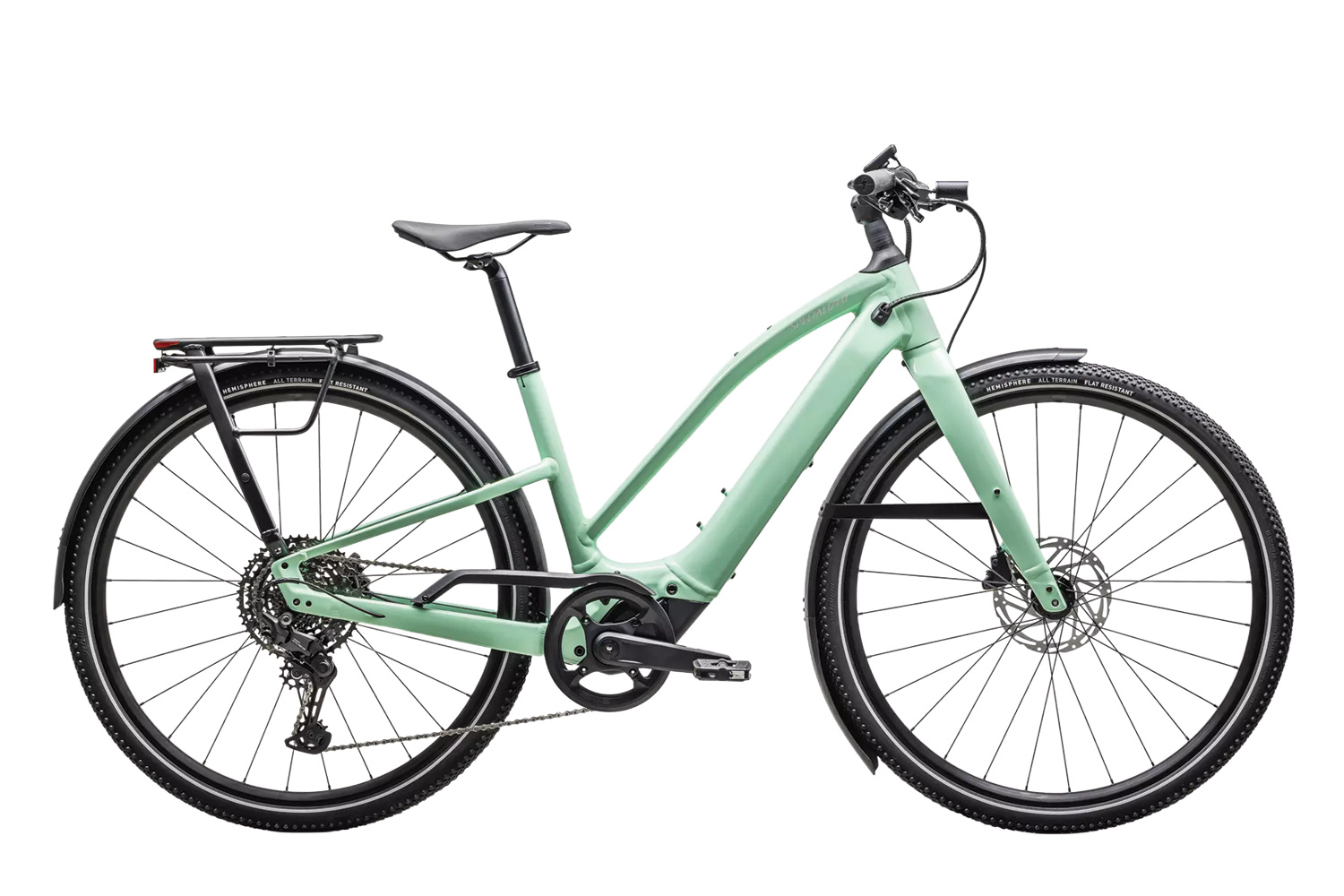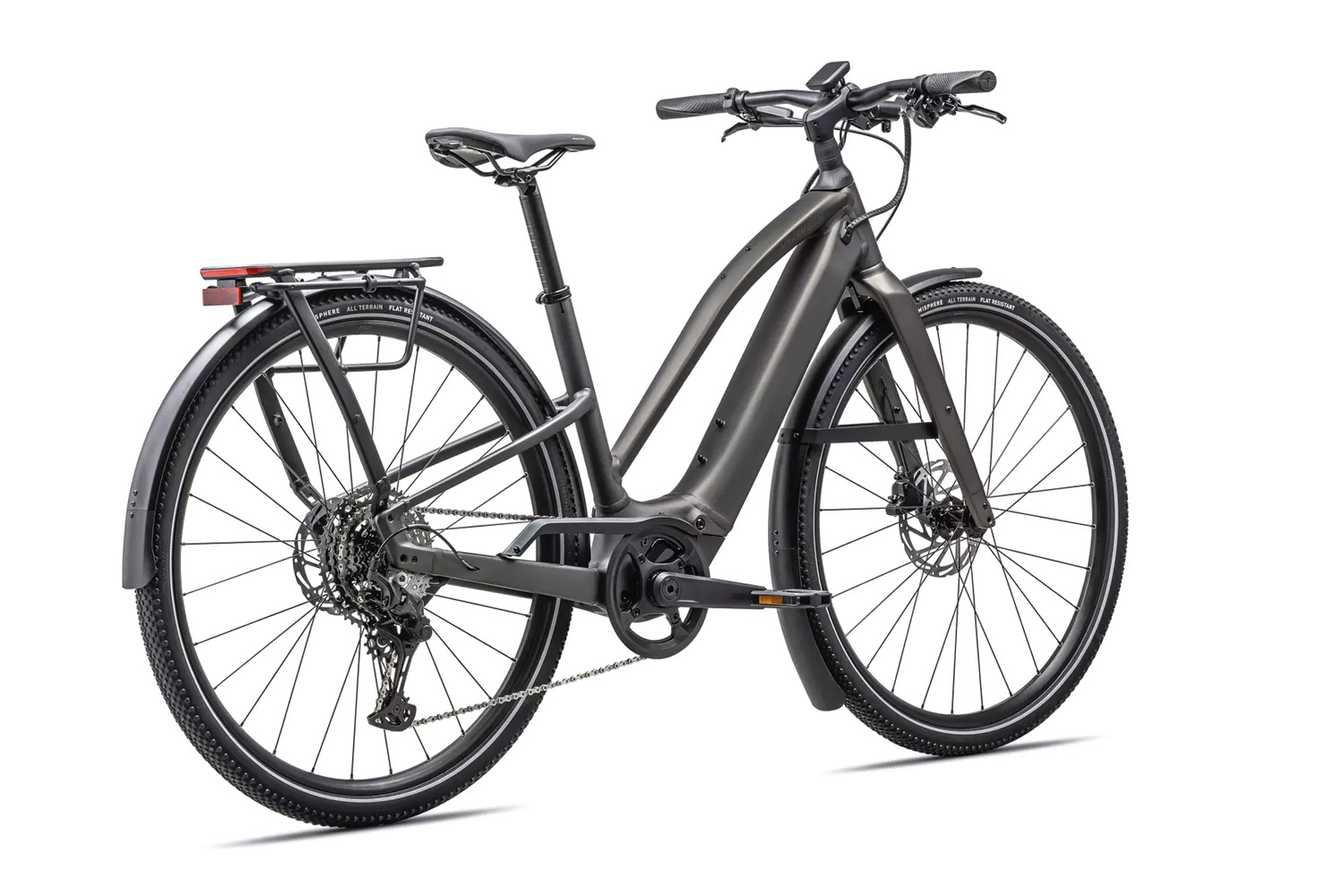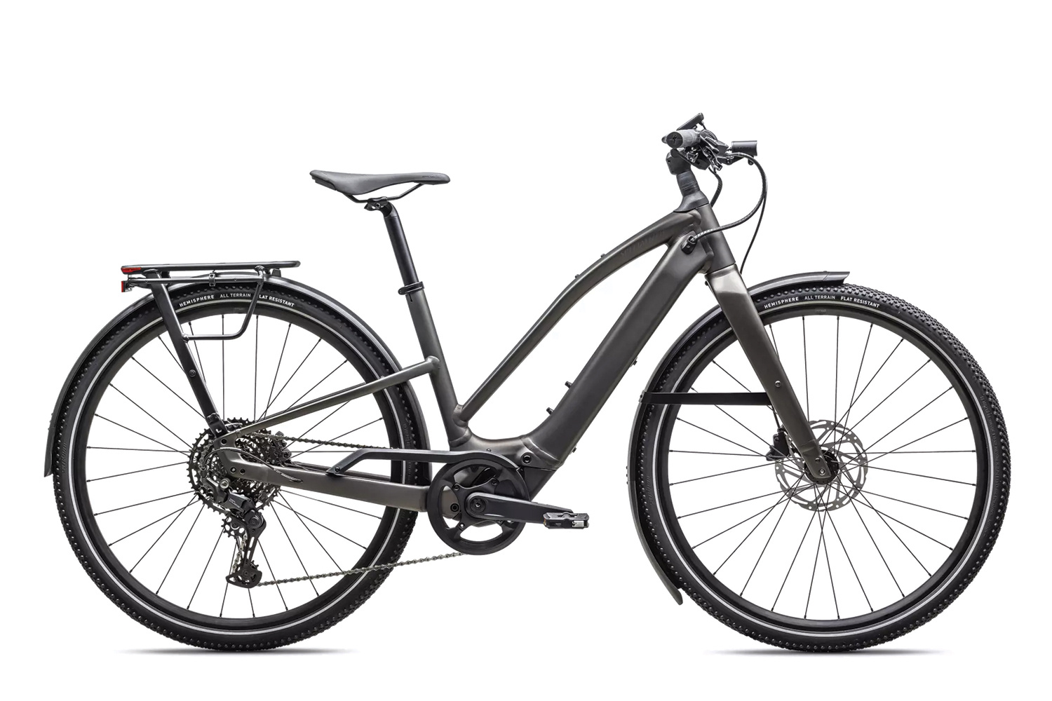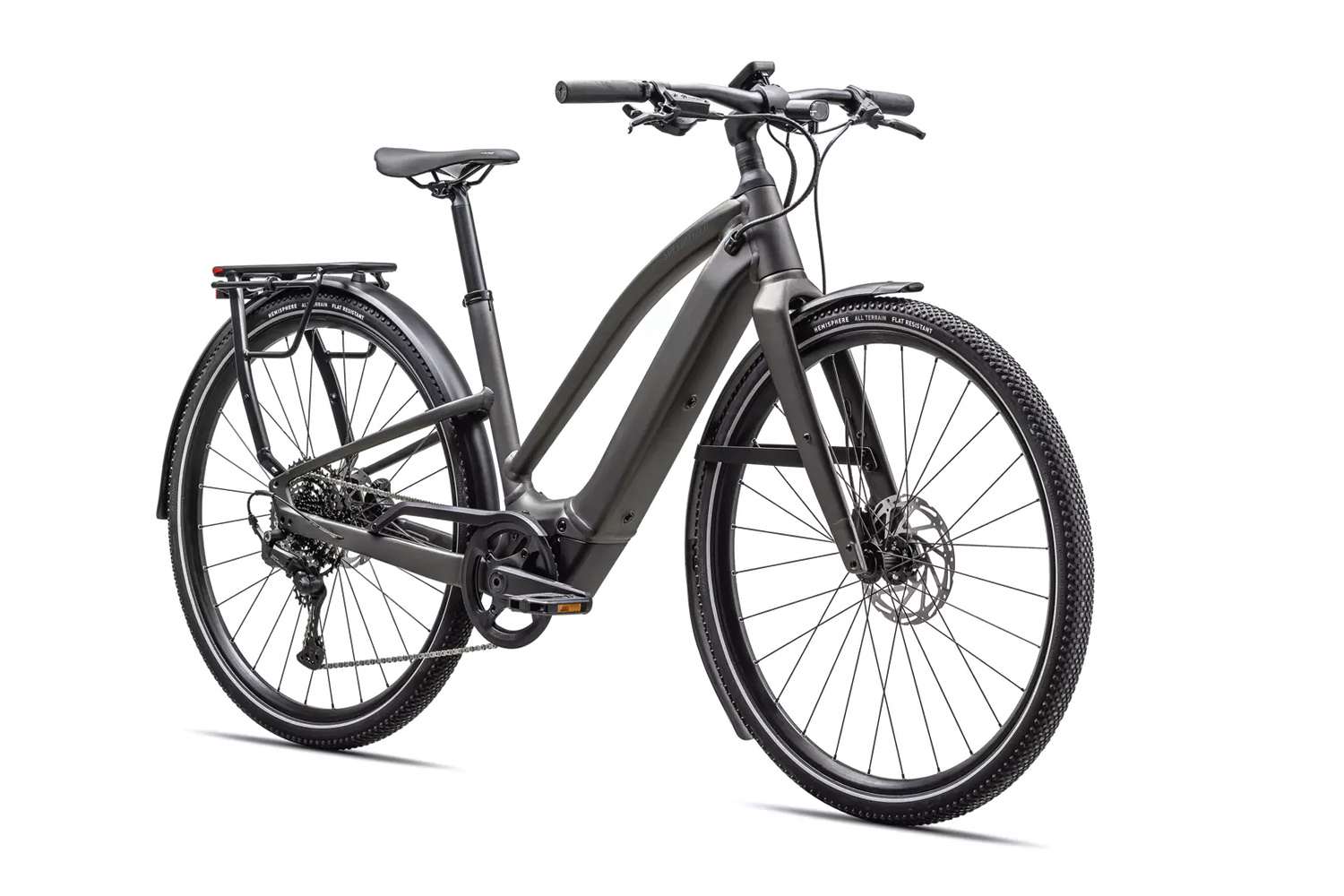 Rear Tire: Specialized Hemisphere flat protection, Reflective side walls, Wirebead, All terrain tire, 700x47c