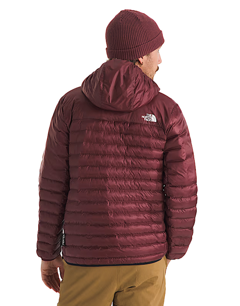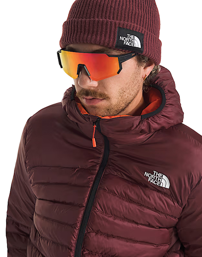 Body fabric and overlay made with recycled nylon Self fabric overlay on hood, yoke and upper sleeves Four-way-stretch underarm gussets for additional mobility Blown ThermoBall™ insulation in channels helps keep you warm even when wet Attached, elastic-bound, three-piece hood Exposed center front zip with an internal draft flap and chin guard Brushed-tricot lining at top of draft flap for added comfort Set-in sleeves Internal drop-in chest pocket Covered, secure-zip hand pockets Hoodie stows in chest pocket Pieced-in, stretch-knit cuffs with FlashDry™ Elastic-bound hem Heat transfer logo on left chest and back-right shoulder |