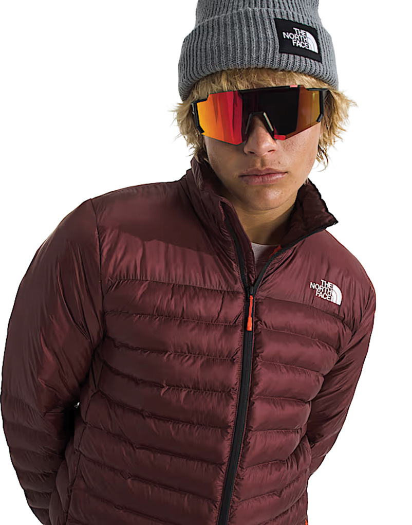 Body fabric and overlay made with recycled nylon Self fabric overlay on yoke and upper sleeves Four-way-stretch underarm gussets for additional mobility Blown ThermoBall™ insulation in channels helps keep you warm even when wet Stand collar Exposed center front zip with an internal draft flap and chin guard Brushed-tricot lining at top of draft flap for added comfort Set-in sleeves Internal drop-in chest pocket Covered, secure-zip hand pockets Jacket stows in chest pocket Pieced-in, stretch-knit cuffs with FlashDry™ Elastic-bound hem Heat transfer logo on left chest and back-right shoulder |