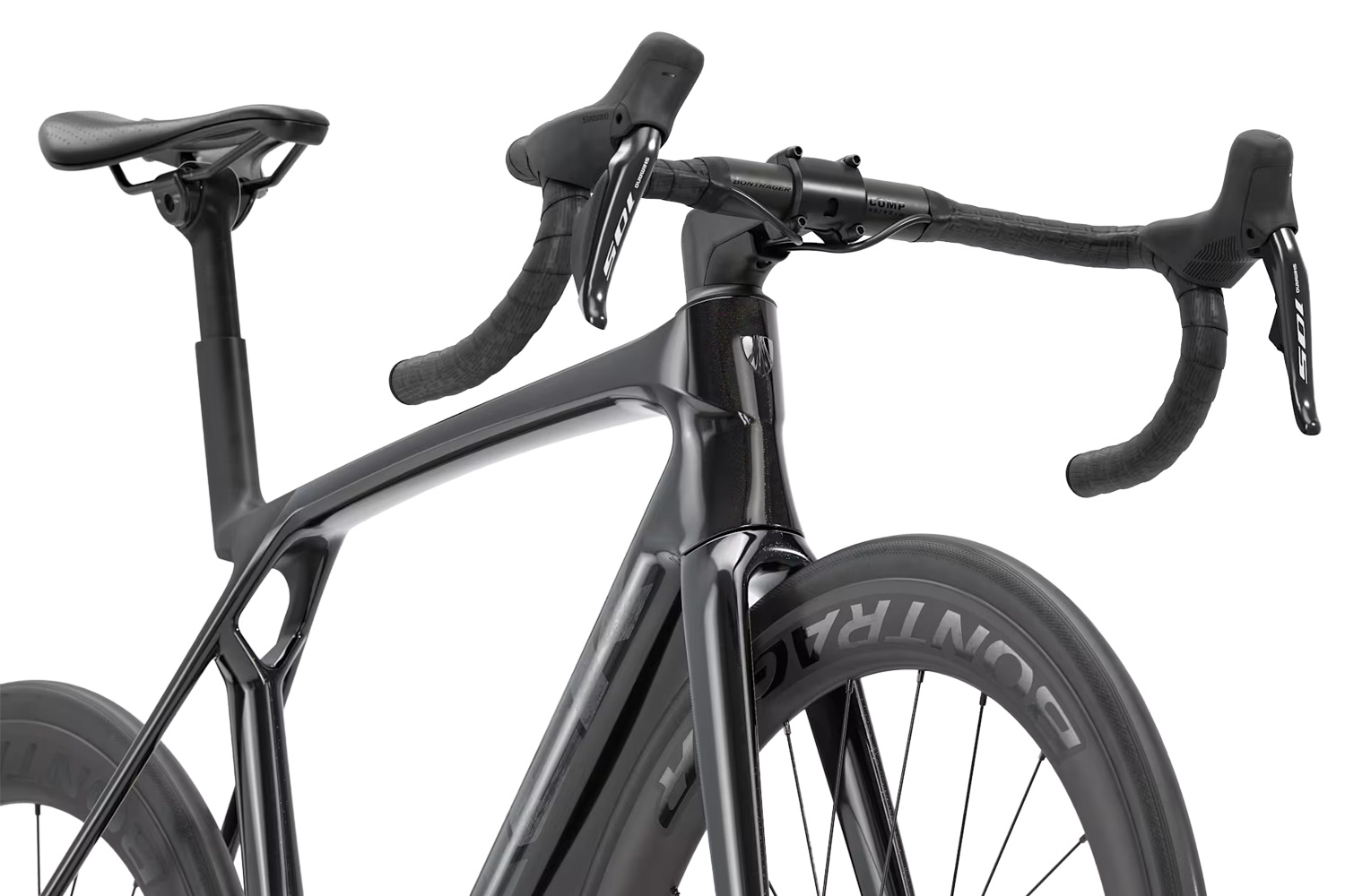 The Trek Madone SL 6 Gen 8 is your ticket to pro-level aerodynamics without the premium price tag. Built with Trek’s OCLV 500 Carbon for a lightweight yet durable ride, it’s engineered to slice through the wind and deliver smooth, responsive handling. The Shimano 105 Di2 electronic drivetrain ensures crisp, precise shifting every time, while carbon wheels keep you light on the climbs and fast on the flats. Add in alloy handlebars for a touch of practicality, and you’ve got a race-ready machine that’s as efficient as it is exhilarating.