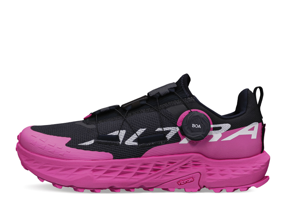 A BOA® Fit System that delivers micro-adjustable precision fit New Vibram® Megagrip outsole for unparalleled grip on wet and dry surfaces Updated Altra EGO™ MAX compound in midsole for a cushioned ride |