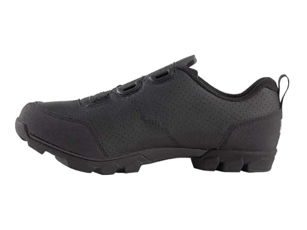 inForm Race last offers a slightly roomier, high-performance fit A single BOA® L6 dial for precision fit and easy micro-adjustments Strong, synthetic perforated upper materials hold up to off-road rider demands Durable GnarGuard rubberized coating protects against abrasions and other damage from trail debris Nylon composite Bronze Series sole provides stiff yet walkable performance Stiffness index: 6 of 14 Tachyon rubber outsole allows great grip on any surface Compatible with 2-bolt SPD-style cleats |