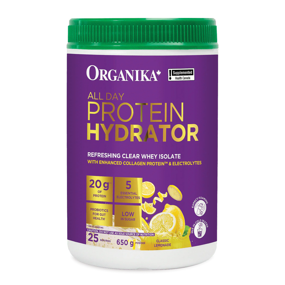 Fuel your day with the refreshing Organika Protein Hydrator Lemonade, a powerful blend designed for hydration and nourishment. Each serving delivers 20 g of high-quality protein, 10 g of grass-fed collagen for joint and skin support, plus 5 essential electrolytes to keep you balanced and energized. Available in vibrant Classic Lemonade flavor, it’s the perfect all-day drink for active lifestyles.
