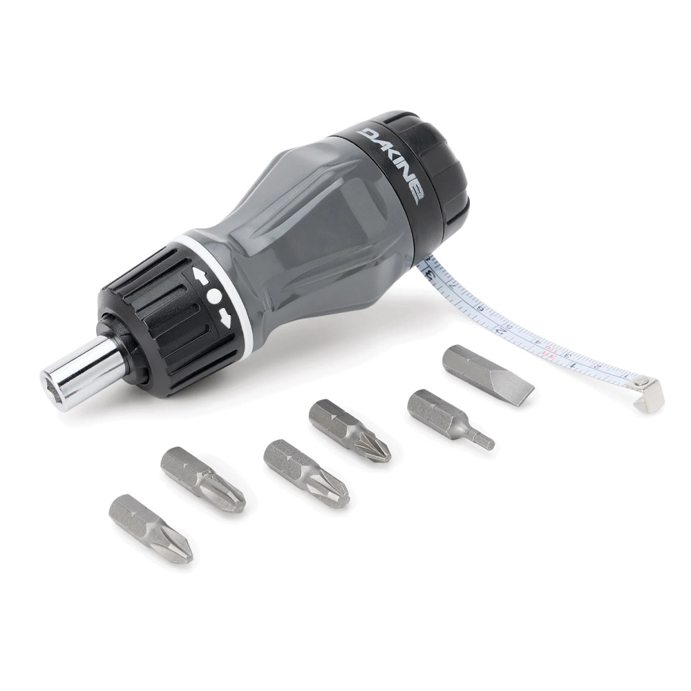 The Dakine Stance Driver is the ultimate driver tool for riders who demand efficiency and versatility. Equipped with all the essential bits for skis, snowboards, and surfboards, it features a bidirectional adjustable ratcheting head for fast, precise adjustments. A retractable tape measure is built in to help you quickly set the perfect binding width every time. Durable and compact, the Stance Driver keeps your gear tuned and ready for action.