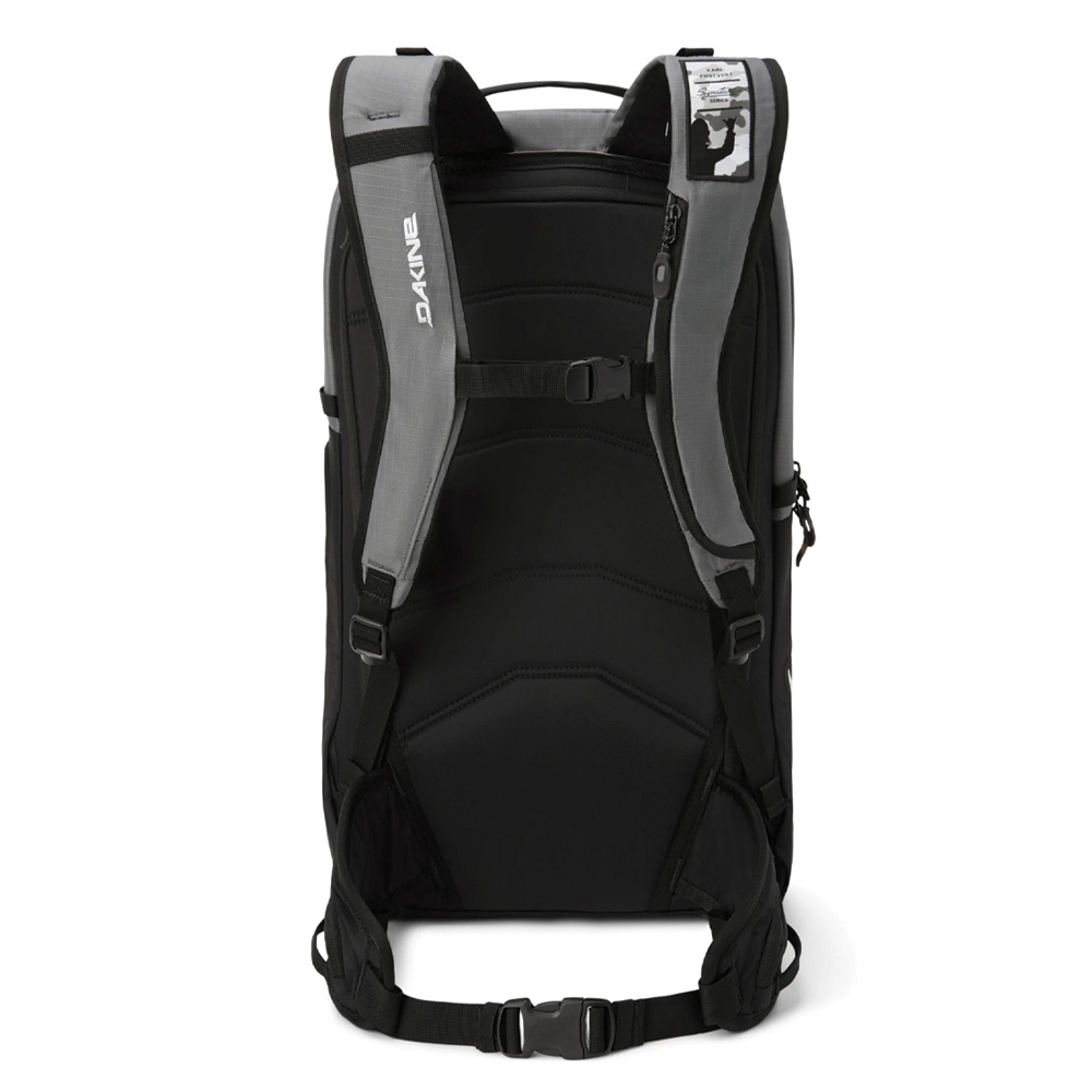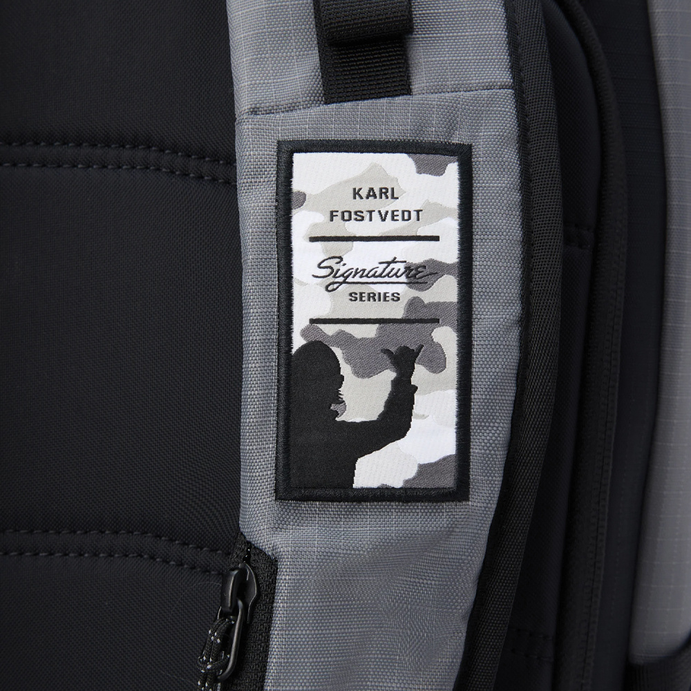 DAKINE SIGNATURE SERIES: KARL FOSTVEDT Vertical snowboard carry Diagonal ski/splitboard carry DK Impact Spine Protector compatible (sold separately) Backpanel zippered additional access Fleece-lined goggle pocket Snow tools/shovel pocket with sleeves 25 mm padded hip belt with side pockets Zippered side pocket Two-way radio handset and insulated hydration compatible 100% recycled polyester |