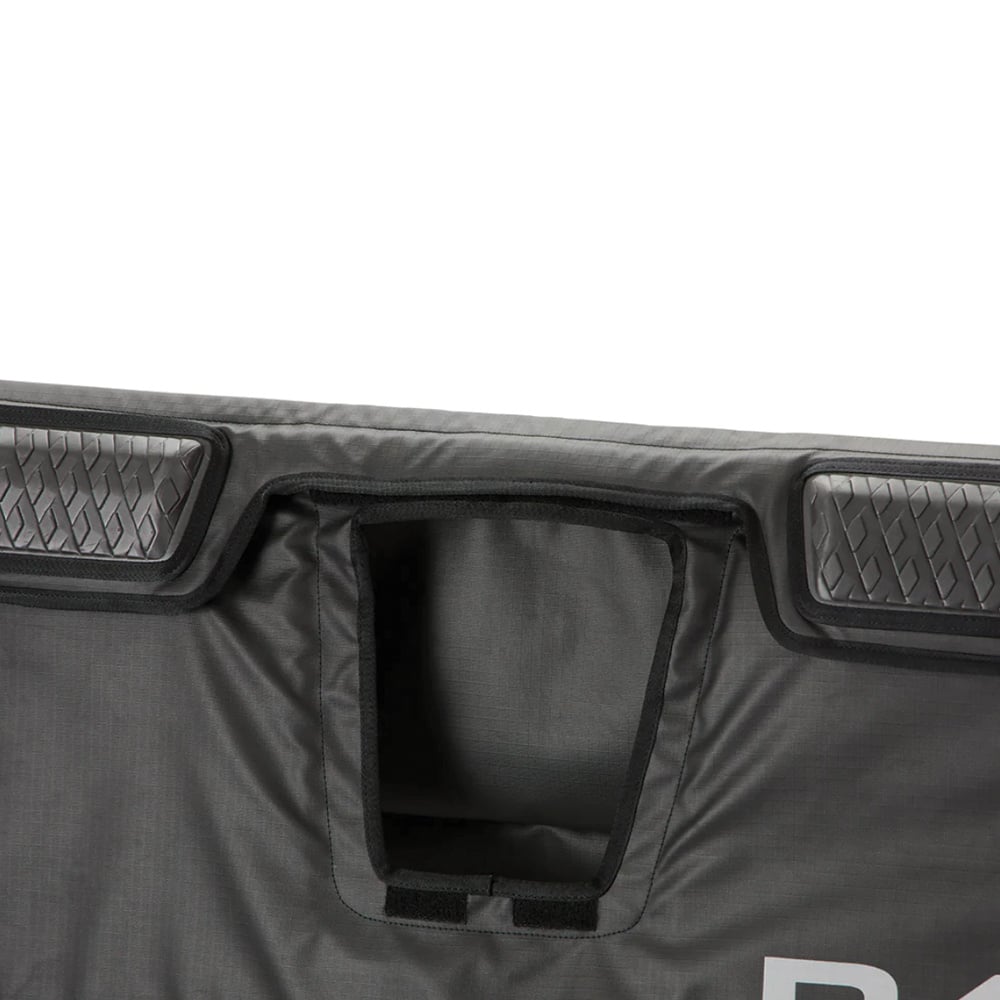 Thoughtful features make it even more trail-ready, including spring-loaded cam lock cinch straps for a secure fit, a removable tailgate camera cover with its own storage pocket, and reflective branding for better nighttime visibility. Compatible with truck shells and tonneau covers, the Universal Pickup Pad carries up to five bikes in the small size or seven in the large—making it a go-to solution for group rides and shuttle laps.