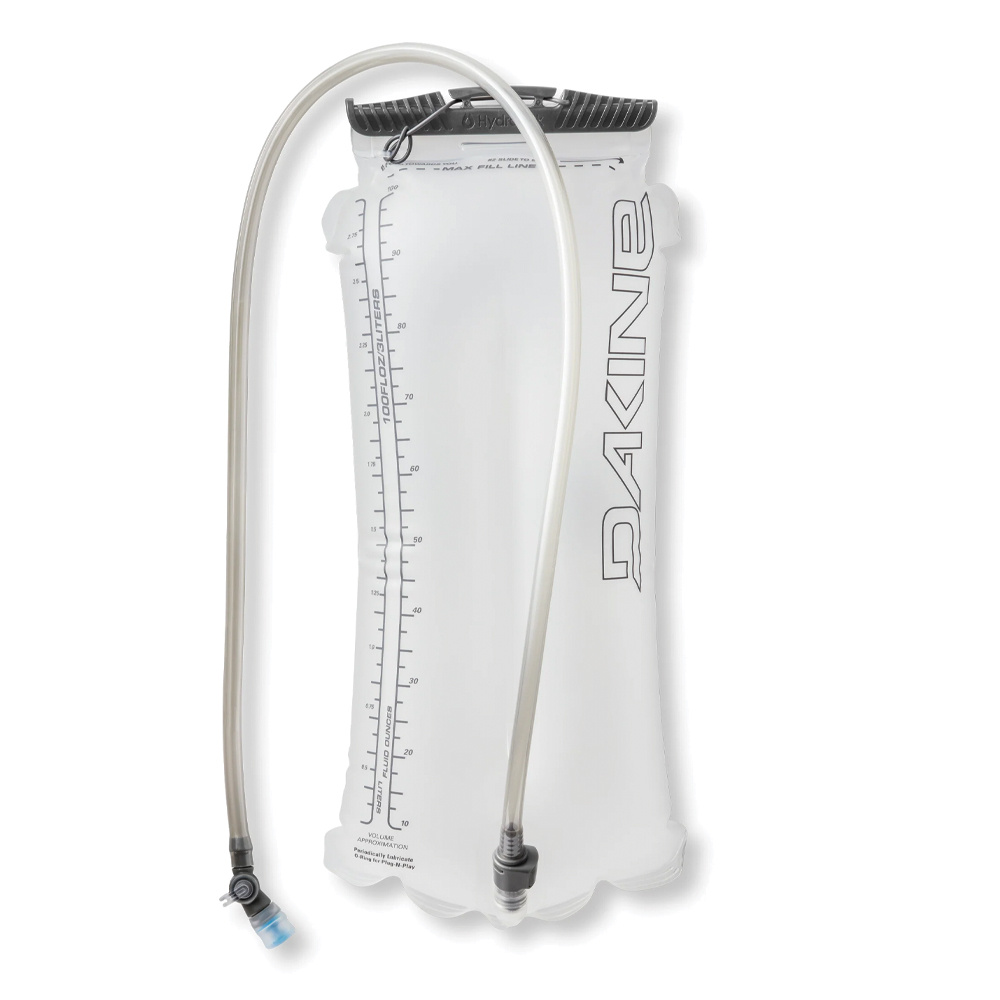 3L / 100 oz Dakine x Hydrapak® 3D lumbar reservoir with quick disconnect Comet Bite Valve is self-sealing and can be opened and locked with one hand Plug-N-Play® quick disconnect hose for easy filling Low profile Shape-Loc center baffle Improved fold and slide wide mouth opening allows for easier opening and filling Constructed of FDA-approved polyurethane (TPU) BPA and PVC free Lifetime no-leak warranty |