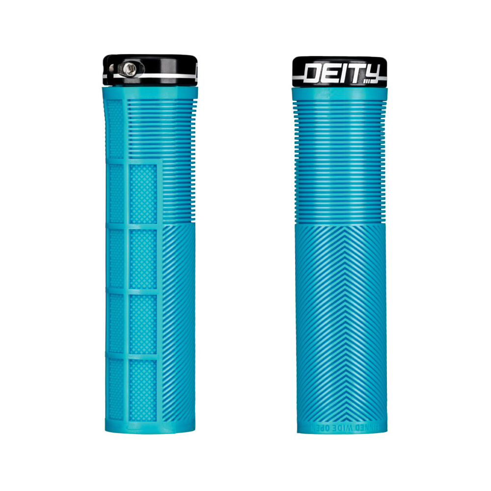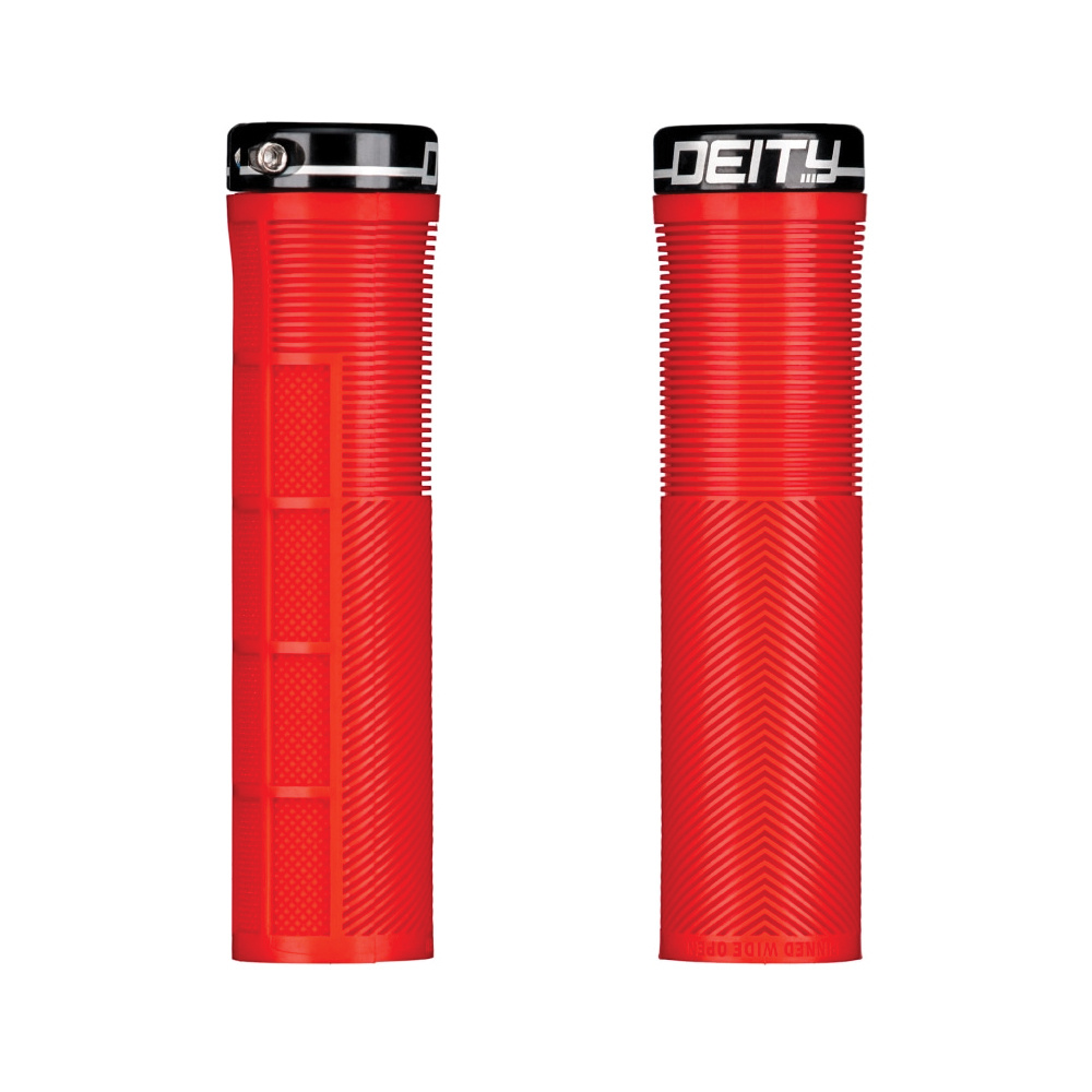 The new benchmark in grip design Dirt Mag Top 100 Product for 2018! Featuring DEITY TRC rubber compound for exceptional durability Tapered inner sleeve to insure perfect contact with the handlebar Single clamp design with forward facing bolts that feature loc-tite Lasered black ano 6061 T6 aluminum clamps Short and wide rib design for added comfort with no side to side play Half waffle recessed design for added control without hot spots Chevron v-channel design for your palm swell to give an ergonomic feel Seamless transition through the end of grip for comfort 132mm length with 32mm outer diameter Intended use: All MTN / Enduro / DJ / Slopestyle and DH Full color range available in Black, Stealth, Red, Green, Blue, Orange, Turq, Gum, Pink, Purple, Shaolin Yellow, and Mint 101 grams for the set INSTALLATION TIP: To fully and properly install your KNUCKLEDUSTER grip due to the tapered inner sleeve...make certain to whack the end of the grip 3 times with the palm of your hand until the grip fully seats onto the handlebar. If you find the fit is a bit tight due to your particular handlebar, a small amount of Isopropyl Alcohol can work wonders for lubrication. Finish the install by tightening the hardware to the specs listed on the packaging. Not compatible with bar ends or plugs |