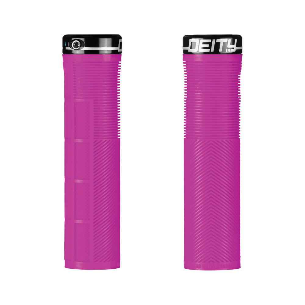 The Deity Knuckleduster Grip is the preferred choice of World Cup rider and gloveless legend Sam Blenkinsop, reflecting DEITY’s dedication to innovation and performance. Crafted with the proprietary TRC rubber blend, these grips offer remarkable traction combined with exceptional durability. The unique tapered internal sleeve design ensures a secure fit by tapping it onto your handlebar for full engagement, delivering reliable control during aggressive rides. Take your mountain biking to the next level with the Knuckleduster’s perfect balance of grip, comfort, and lasting wear.