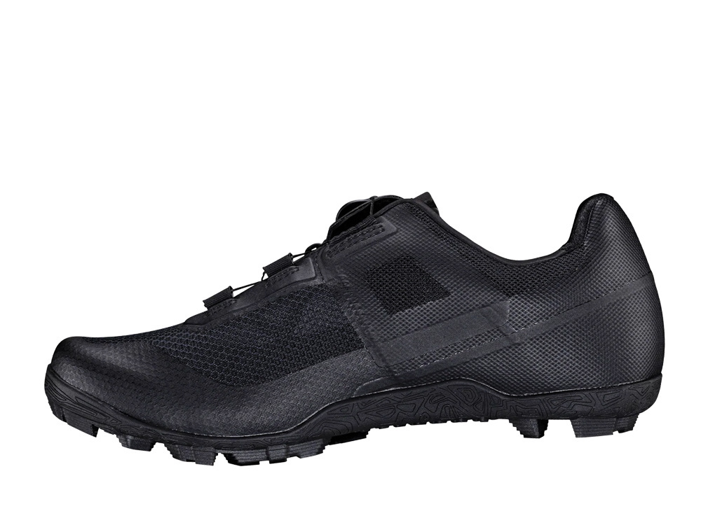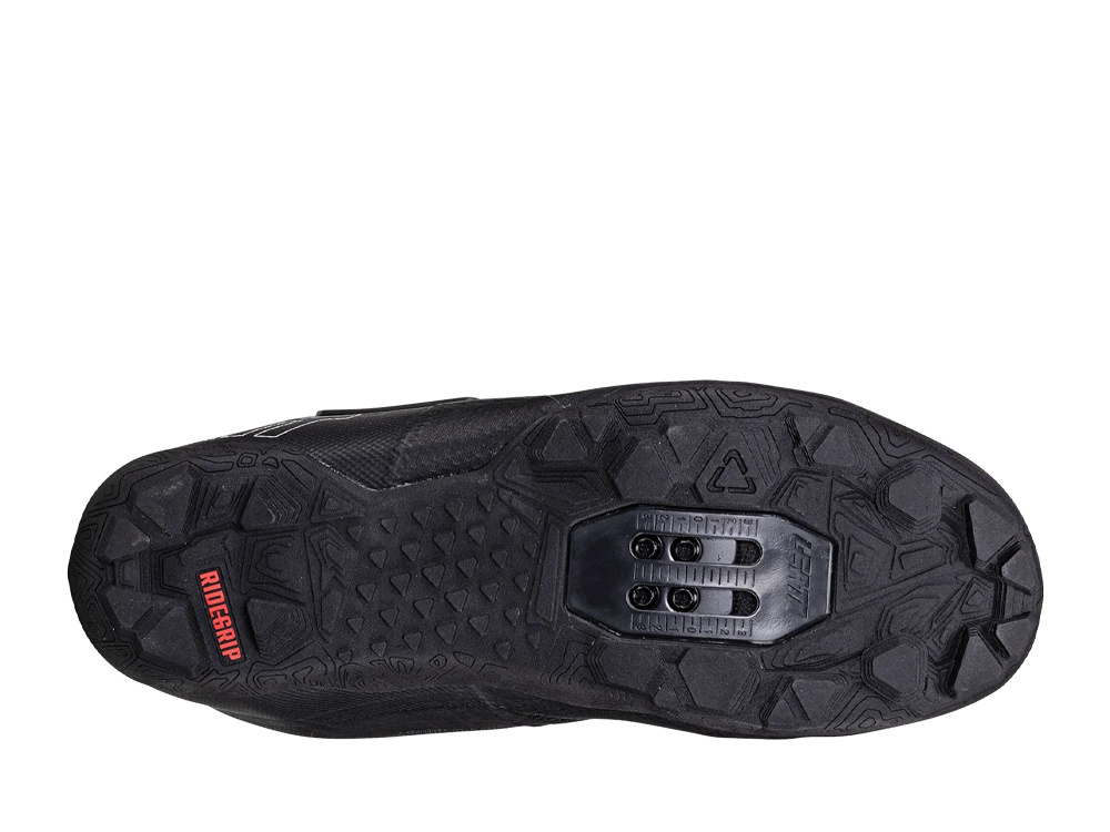 Injected shank: 100% nylon. This gives it more flex, making them easy to walk in Extended Leatt cleat slots for greater range of adjustment Outsole made from RideGrip rubber - an aggressive tread pattern for easy off-bike walking or incline climbing Lightweight, translucent polymer fibre upper with TPU overlay makes for a see-through, fashionable look Directional fabric on heel to prevent heel slippage Single MOZ/Leatt lacing system. Our proprietary D-Ring allows the webbing strap to adjust automatically to any instep height PU leather tongue |