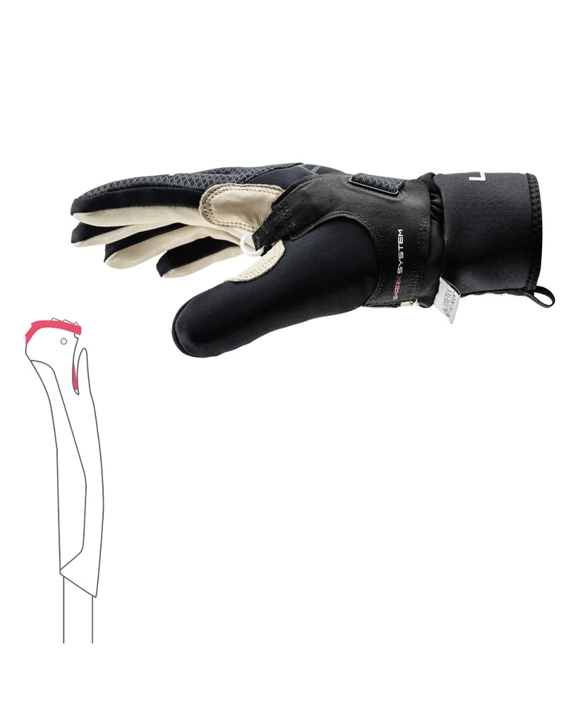 SHARK SYSTEM: The Shark System offers you an optimal power transfer thanks to a direct connection between the hand and the pole. Rapid clicking in and out are no problem and a safety release can protect against injury. All Shark straps and gloves are compatible with all Shark poles. WOMEN COMFORT FIT: The glove has a comfortable, somewhat more loosely cut design for women’s hands. WATER-RESISTANT COMPONENTS: The use of multi-layered water-resistant laminates and functional components for the highest level of water resistance. EXTRA WARM LEVEL: The warmth level is based on the shell, insulation and lining materials, as well as the hydrophobic characteristics of the glove. The fit and construction also influence the level. |
