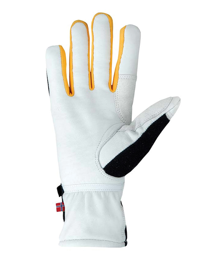Warm and robust glove with traditional cut Nordic elk leather Knitted insulation Wind breaking Terry thumb Size: 5-12 |