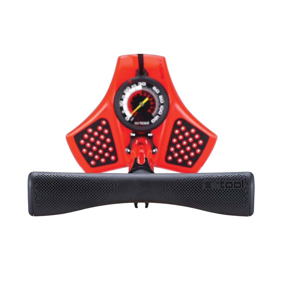Dual-scale 3" (76mm) oversized gauge has 0-30 PSI (2.2bar) zone for mountain tires, and 30-120 PSI (8.2bar) zone for road tires. SwitchHitter II head automatically switches between Schrader and Presta valves. Steel base and aluminum barrel construction. Ergonomic wing handle is overmolded for comfort. Includes spare rubber seal for head. |