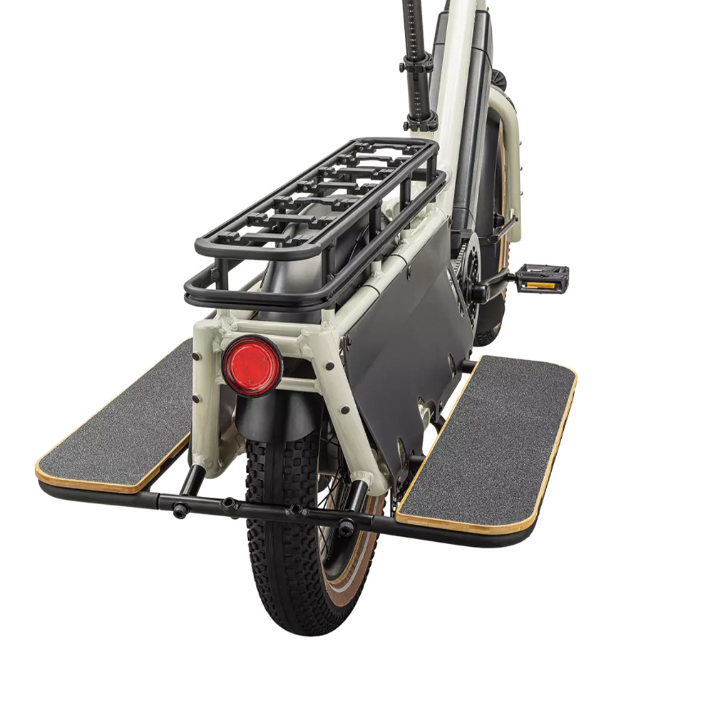 The Globe LT Running Boards from Specialized are designed to enhance the carrying capability of the Globe Haul LT electric cargo bike, providing sturdy underfoot support for passengers while helping stabilize cargo during transport; when used alongside the adjustable cargo rails and compatible side bags, these running boards create a secure, integrated platform that improves balance, comfort, and overall ride confidence—making the bike more capable for daily commuting, family transport, and heavy-load adventures.
