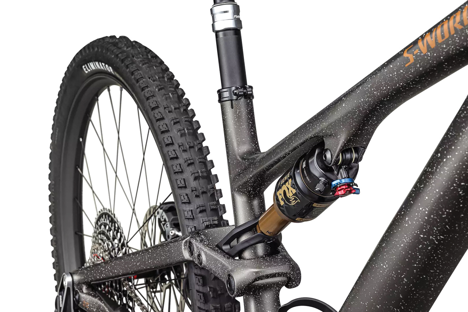 Rear Shock: FOX FLOAT Factory with Specialized GENIE Shock Tech, Ride Dynamics Trail Tune, 2-position lever w/3 setting Open mode tuning range, LSR adjustment, S1:210x52.5mm, S2-S6:210x55mm