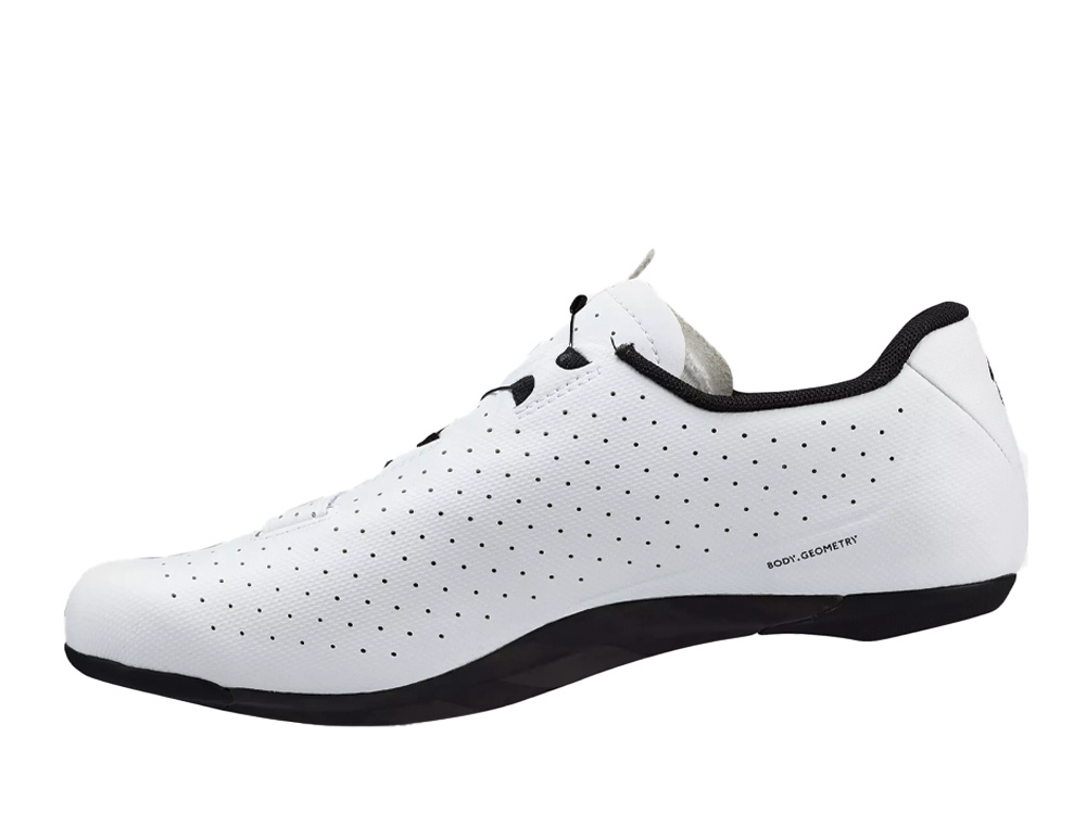 Body Geometry sole construction and footbeds are ergonomically designed and scientifically tested to boost power, increase efficiency, and reduce chance of injury by optimizing hip, knee, and foot alignment. Woven Carbon sole engineered to be stiff, yet light with a large rubber heel and toe for off-the-bike traction. BOA® Fit System featuring a single Li2 dial delivers micro adjustable, multi-directional precision fit for improved performance. Seamless Synthetic upper for a supple fit. All over laser perforation added breathability. Internal heel counter provides a supportive and secure heel fit. Three-bolt cleat pattern fits all major road pedals. Approximate weight: 268g (1/2 pair, Size 42). |