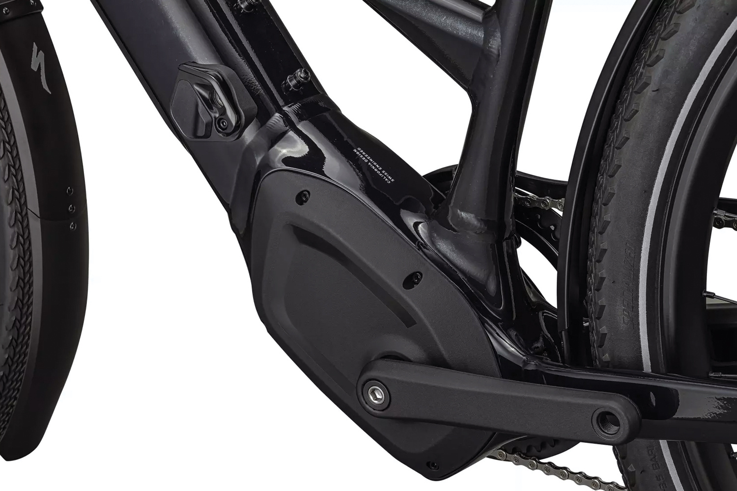 Turbo Full Power 2.2 motor and 710Wh battery offer an unparalleled riding experience, providing a smooth, seamless, and shockingly quiet amplification of your efforts, up to 28 mph. The integrated controller responds to your pedal inputs resulting in intuitive amplification of your efforts with an incredibly natural feel. MasterMind and Specialized app - The MasterMind display reveals all relevant info about your ride and allows real-time tuning of support levels. MasterMind seamlessly integrates with the Specialized app for range optimization tools, advanced tuning, on-ride diagnostics, and more. Proven Smooth Efficiency - We designed a custom testing mechanism to analyze bumps at even the smallest frequency to increase comfort and vision. That precision, paired with a suspended seatpost, higher volume tires, and an 80 mm suspension fork, will flatten roads before your eyes. Turbo System Lock - Use the Specialized app to disable your bike’s motor and activate the motion sensor alarm. Once locked, the motor cannot be enabled again except by the owner. Garmin Radar - An integrated Garmin Radar sensor lets you know when traffic is coming up behind you. Garmin’s Radar technology can detect cars up to 140 meters away. MasterMind will give riders a visual, audible, and haptic alert of an approaching vehicle’s relative distance and rate of speed. Fully Integrated Removable and Lockable Downtube Battery - Easy to charge, easy to secure. Equipped with DRYTECH Fenders, LED front and rear lights, and 27kg capacity rear HD Rack. The rear rack is compatible with child bike seats, and the bike is also rated to pull a thru-axle trailer. Long-Range - With a ride-anywhere range, go up to 75 miles (120 km) or 5.5 hours on a single charge (eco mode). |