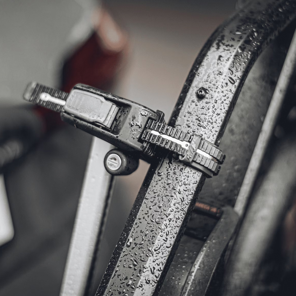 Easy fastening of large tires: Ratcheting pump buckles and wheel straps for easy fastening of tires up to 3,2” (up to 5" tires with a separately sold accessory)