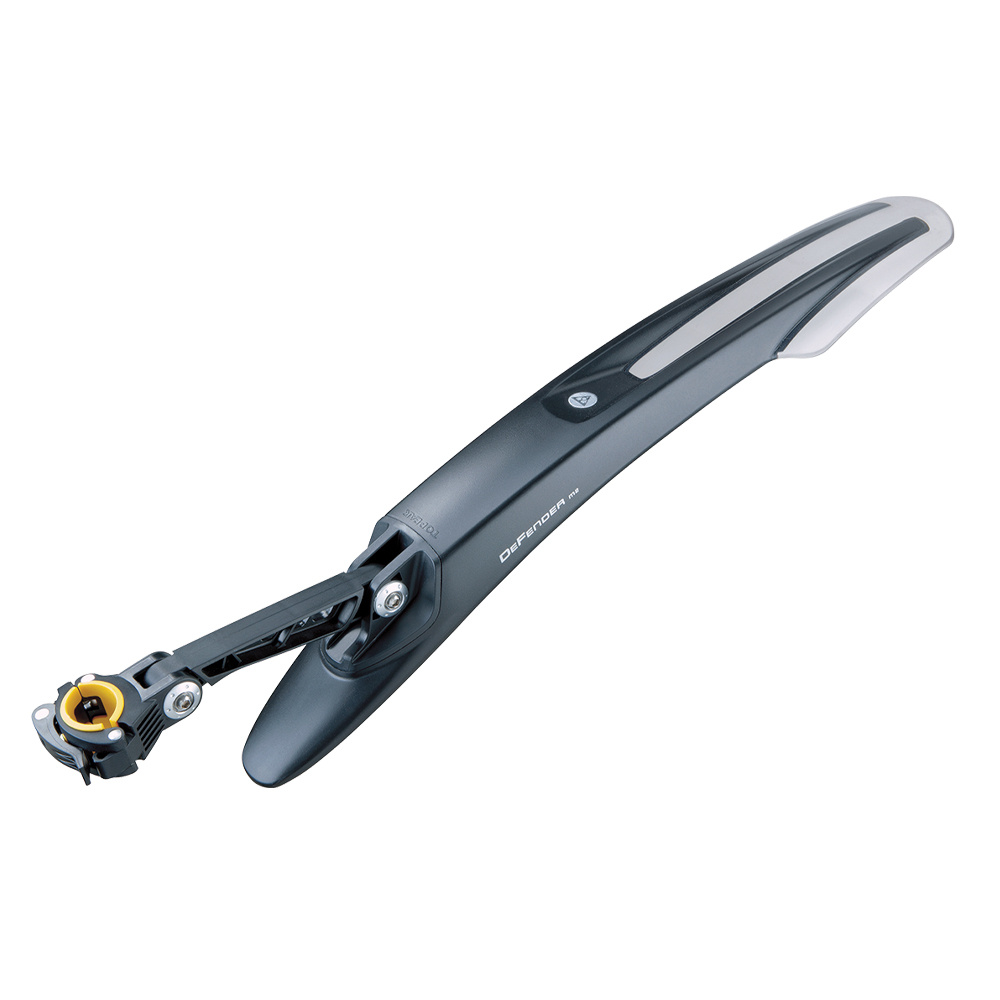 The Topeak DeFender M2 Rear is built for 26" wheel mountain bikes, offering tough, flexible coverage against mud and debris. Its ultra-secure quick-release mount fits standard and oversized seatposts (25.4–34.9 mm) and features a two-pivot arm that adjusts for perfect tire coverage and bike fit. Constructed with a stiff engineering-grade polymer frame and a flexible co-molded trailing edge for added durability, the DeFender M2 also features a highly polished underside that resists dirt buildup and makes cleaning a breeze.