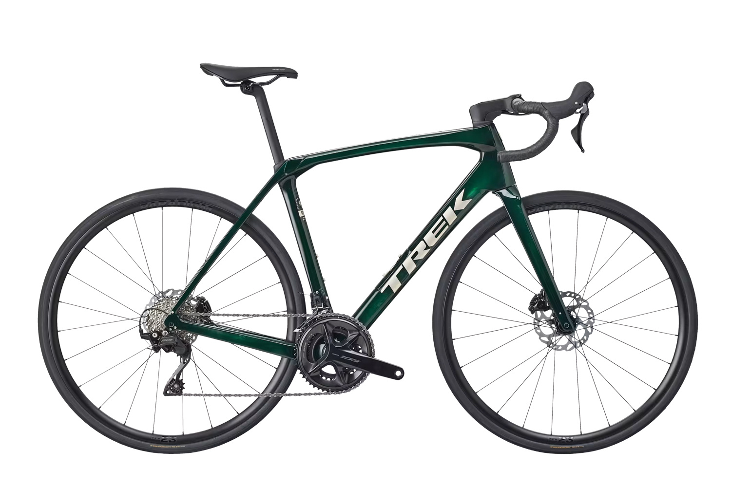 Saddle: Verse Short Comp, steel rails, 145mm width *Seatpost: Size: 44, 47, 50, 52, 54, 56 KVF aero carbon seatpost, 20mm offset, 280mm length Size: 58, 60, 62 KVF aero carbon seatpost, 20mm offset, 320mm length Handlebar: Size: 44, 47 Bontrager Comp, alloy, 31.8mm, 80mm reach, 121mm drop, 36cm control width, 40cm drop width Size: 50, 52 Bontrager Comp, alloy, 31.8mm, 80mm reach, 121mm drop, 38cm control width, 42cm drop width Size: 54, 56, 58 Bontrager Comp, alloy, 31.8mm, 80mm reach, 121mm drop, 40cm control width, 44cm drop width Size: 60, 62 Bontrager Comp, alloy, 31.8mm, 80mm reach, 121mm drop, 42cm control width, 46cm drop width Grips: Trek EcoTack *Stem: Size: 44 Trek RCS Pro, -7 degree, 60mm length Size: 47 Trek RCS Pro, -7 degree, 70mm length Size: 50 Trek RCS Pro, -7 degree, 80mm length Size: 56, 58 Trek RCS Pro, -7 degree, 100mm length Size: 60, 62 Trek RCS Pro, -7 degree, 110mm length Brake: Shimano 105 hydraulic disc, flat mount *Brake Rotor: Size: 44, 47, 50, 52, 54, 56, 58, 60, 62 Shimano CL700, centerlock, 160mm Size: 44, 47, 50, 52, 54, 56, 58 Shimano RT70, centerlock, 160mm Rotor Size: Max brake rotor sizes: 160mm front & rear