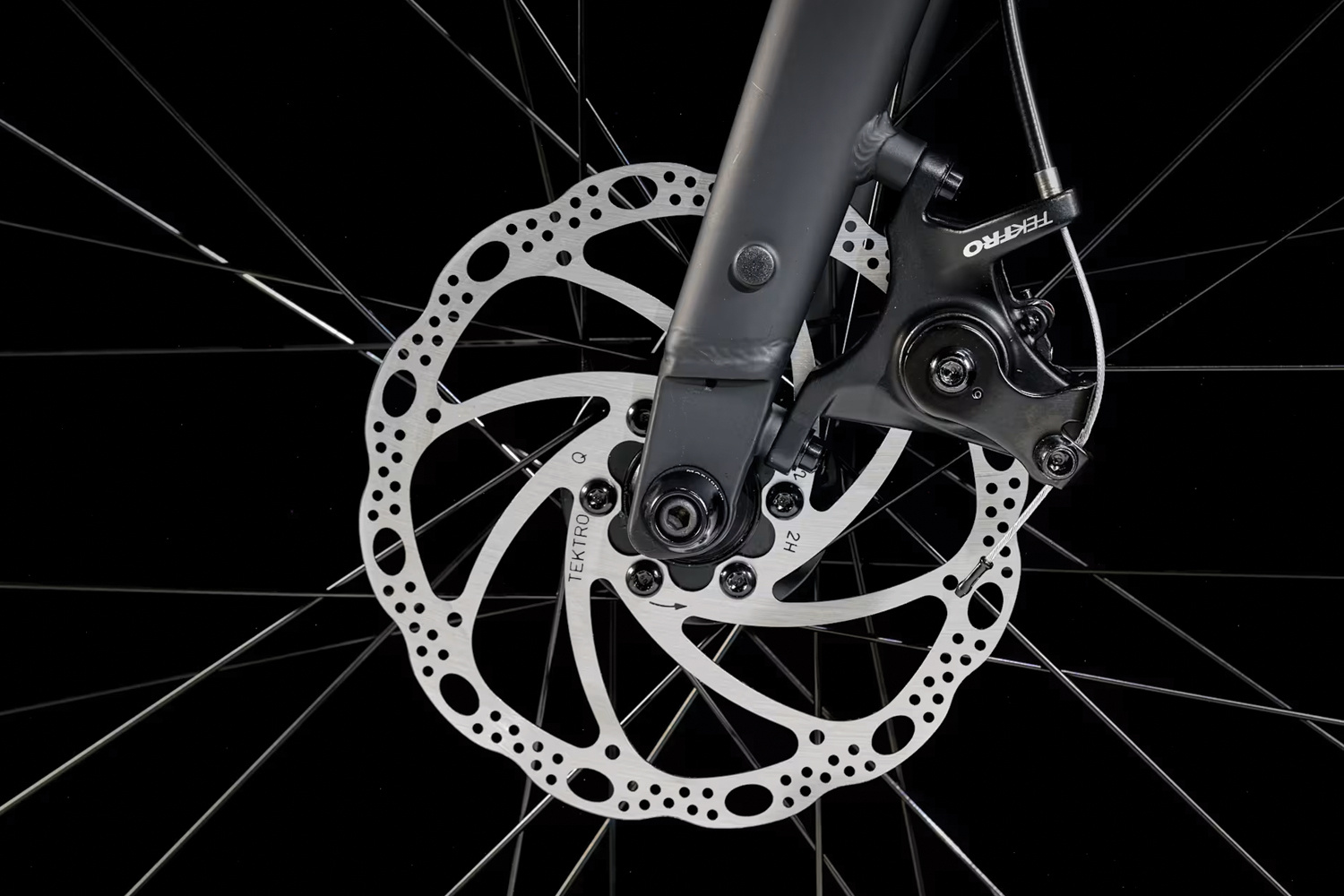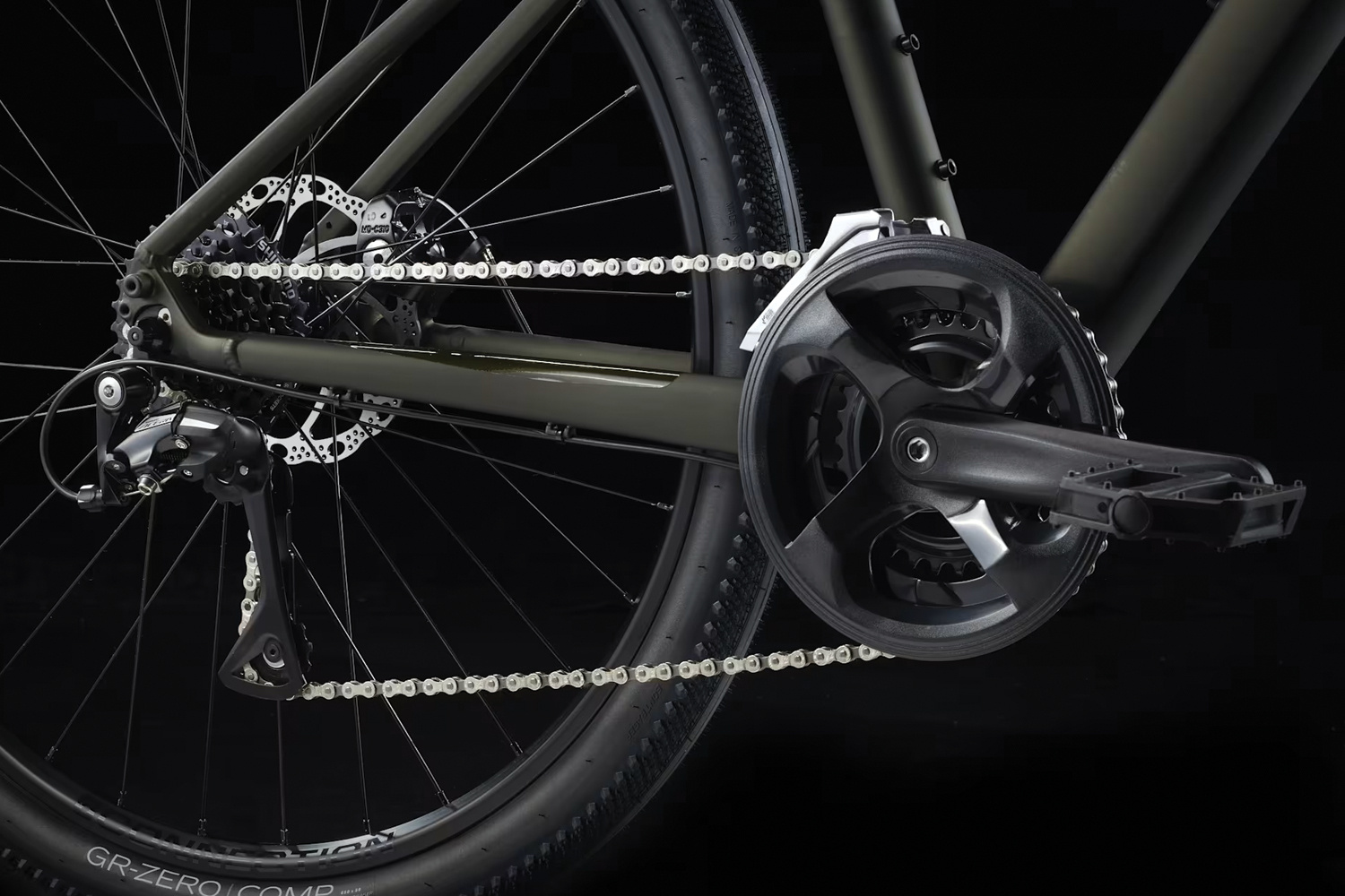 A lightweight aluminum frame with sleek internal cable routing and rack and fender mounts, wide 650b wheels and wide 50c tires for capability and comfort on varied terrain, a reliable 2x8 Shimano drivetrain with a wide range of gearing so you're never pedaling too hard or too soft, comfortable ergonomic grips, and powerful mechanical disc brakes for all-weather stopping power. |