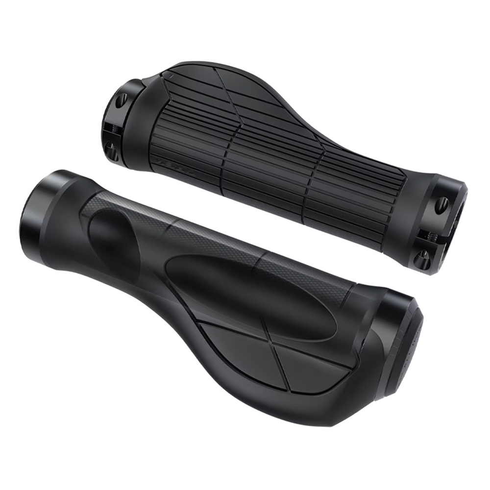 The Trek Ergonomic Pro MTB Grips are built for long rides and rough terrain, providing lasting comfort and control. Featuring a paddle-style profile that maximizes hand surface area, these grips improve ride feel and reduce pressure points. Dual alloy lock-ons ensure a secure fit during rowdy rides, while strategic core cutouts add 28% more vibration-damping padding in key areas to minimize hand fatigue and keep you riding longer.