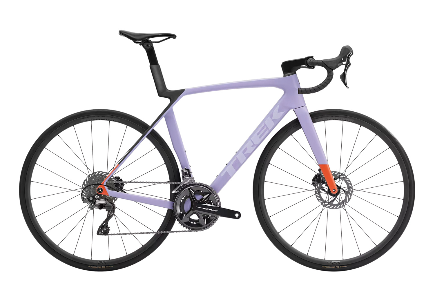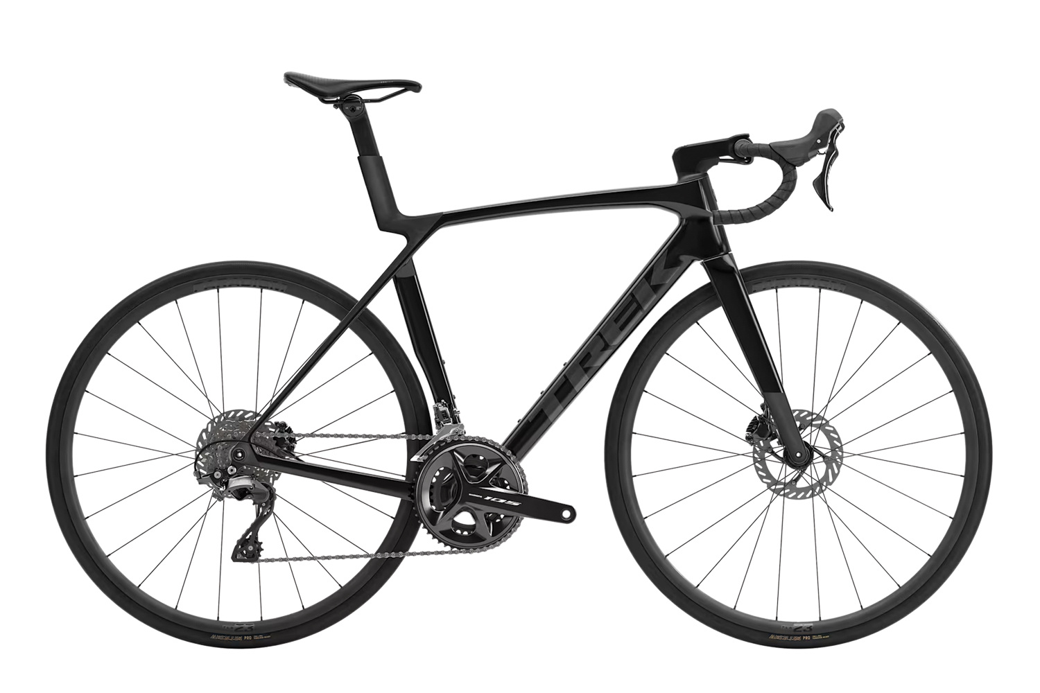 Saddle: Bontrager Aeolus Elite, austenite rails, 145mm width Seatpost: Madone aero carbon seatpost, 0mm offset, short length *Handlebar: Size: XS Bontrager Comp, alloy, 31.8mm, 80mm reach, 121mm drop, 36cm control width, 40cm drop width Size: S, M Bontrager Comp, alloy, 31.8mm, 80mm reach, 121mm drop, 38cm control width, 42cm drop width Size: ML, L Bontrager Comp, alloy, 31.8mm, 80mm reach, 121mm drop, 40cm control width, 44cm drop width Size: XL Bontrager Comp, alloy, 31.8mm, 80mm reach, 121mm drop, 42cm control width, 46cm drop width Handlebar: Trek EcoTack Stem: Size: XS Trek RCS Pro, -7 degree, 80mm length Size: S, M Trek RCS Pro, -7 degree, 90mm length Size: ML, L Trek RCS Pro, -7 degree, 100mm length Size: XL Trek RCS Pro, -7 degree, 110mm length Brake: Shimano 105 hydraulic disc, flat mount Brake Rotor: Shimano CL700, centerlock, 160mm Brake Rotor Size: Max brake rotor sizes: 180mm front, 160mm rear |