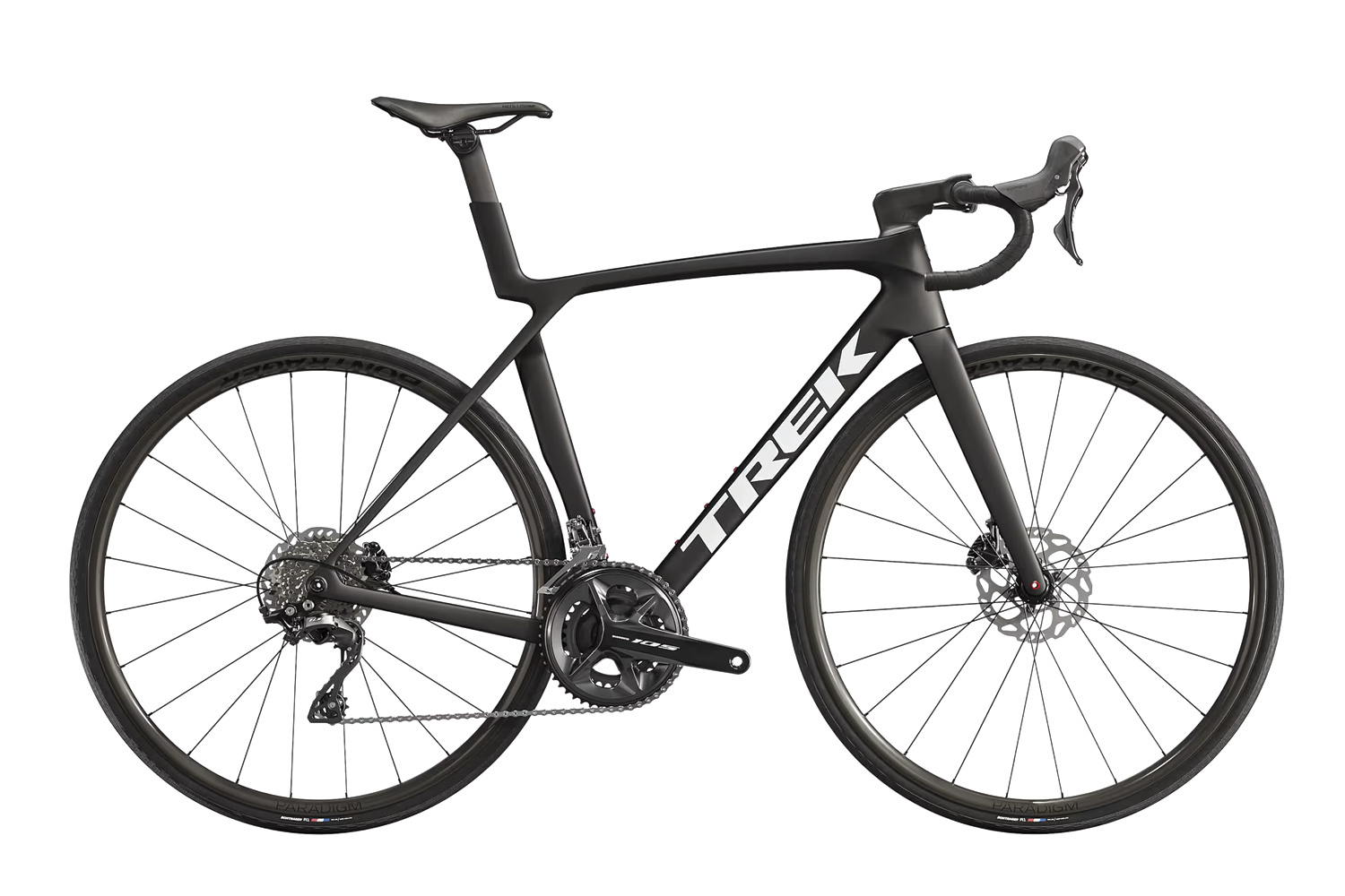 Saddle: Bontrager Aeolus Elite, austenite rails, 145mm width Seatpost: Madone aero carbon seatpost, 0mm offset, short length *Handlebar: Size: XS Bontrager Comp, alloy, 31.8mm, 80mm reach, 121mm drop, 36cm control width, 40cm drop width Size: S, M Bontrager Comp, alloy, 31.8mm, 80mm reach, 121mm drop, 38cm control width, 42cm drop width Size: ML, L Bontrager Comp, alloy, 31.8mm, 80mm reach, 121mm drop, 40cm control width, 44cm drop width Size: XL Bontrager Comp, alloy, 31.8mm, 80mm reach, 121mm drop, 42cm control width, 46cm drop width Handlebar: Trek EcoTack Stem: Size: XS Trek RCS Pro, -7 degree, 80mm length Size: S, M Trek RCS Pro, -7 degree, 90mm length Size: ML, L Trek RCS Pro, -7 degree, 100mm length Size: XL Trek RCS Pro, -7 degree, 110mm length Brake: Shimano 105 hydraulic disc, flat mount Brake Rotor: Shimano CL700, centerlock, 160mm Brake Rotor Size: Max brake rotor sizes: 180mm front, 160mm rear |