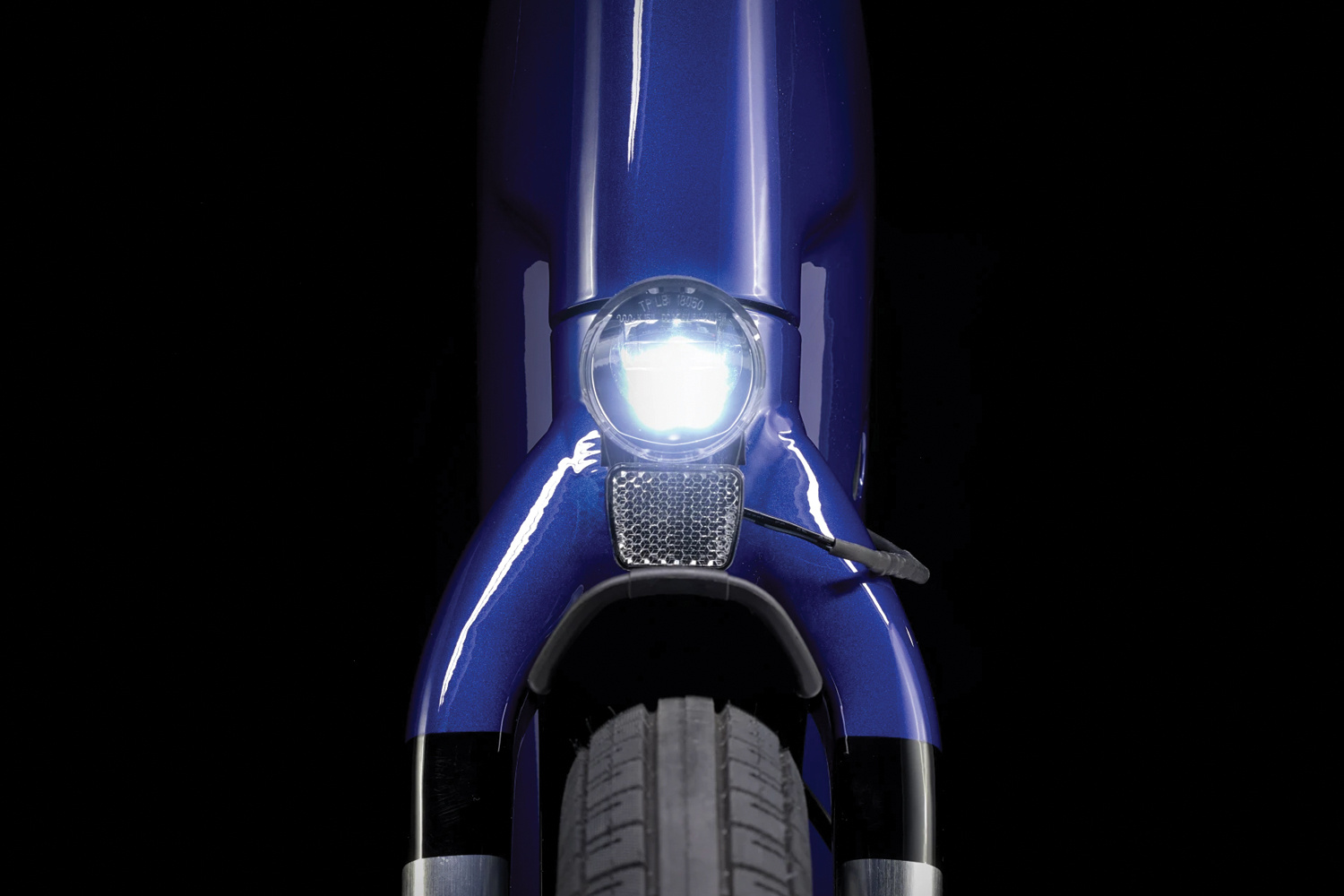 A lightweight aluminum frame with lowstep geometry, a Bosch Performance Line Cruise (250W, 75Nm) motor capable of sustaining speeds up to 20mph, a Bosch PowerPack 545Wh battery that's fully encased in the frame, and a Bosch Purion 200 controller. Plus, a 9-speed Shimano CUES drivetrain, hydraulic disc brakes for all-weather stopping power, a suspension seatpost, stable 27.5" wheels with wide, 2.4" puncture-resistant tires for extra traction, ergonomic grips, a kickstand, front and rear lights, and a MIK rear rack and fenders. |