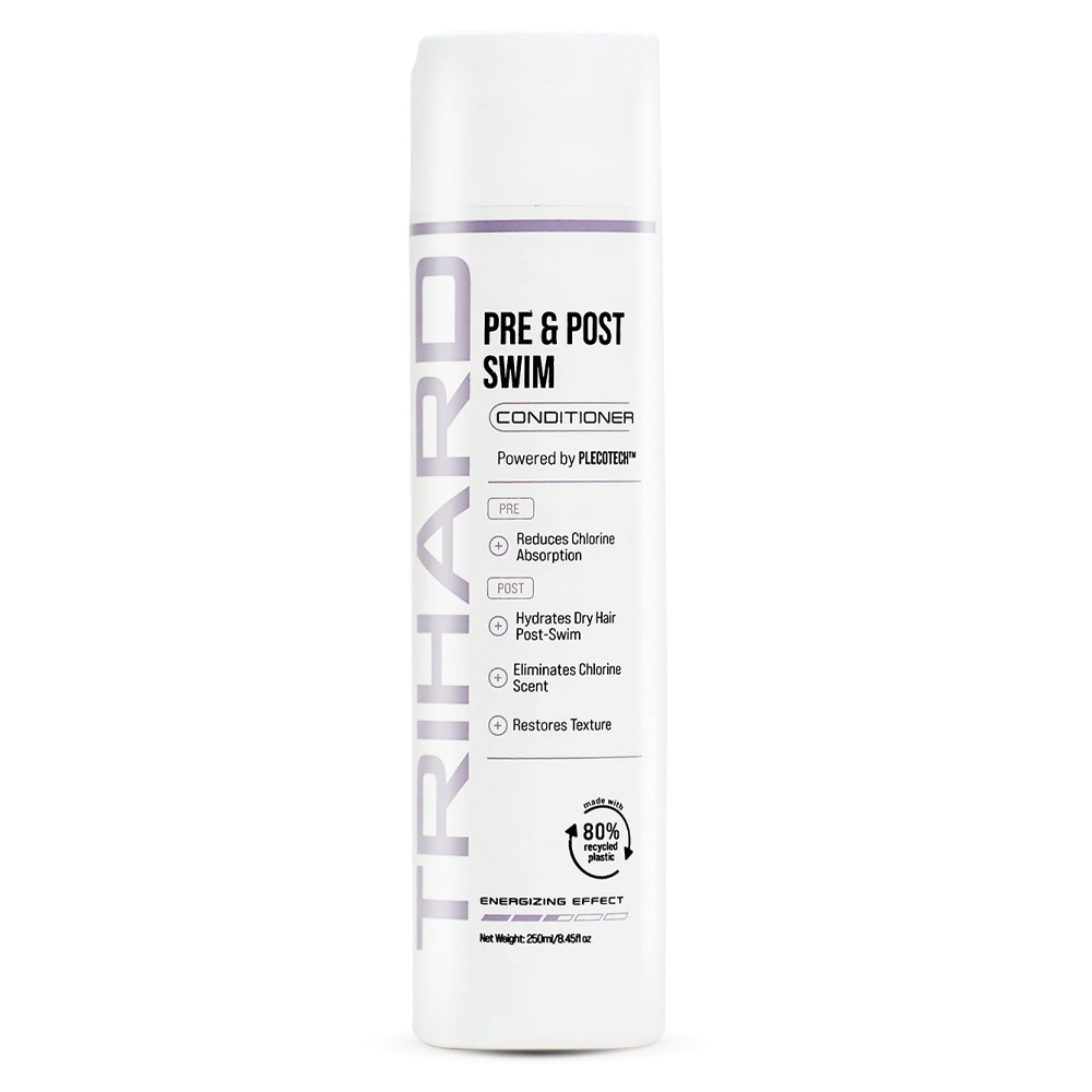 Trihard Pre & Post-Swim Conditioner is a dual-action formula designed to protect and nourish your hair before and after swimming. Pre-swim, it creates a barrier to neutralize the absorption of chlorine, salt, and pool chemicals, helping to prevent dryness and damage. Post-swim, it restores moisture, improves texture, and soothes brittle, chemically-exposed hair. This conditioner is a must-have for swimmers looking to maintain strong, healthy hair.